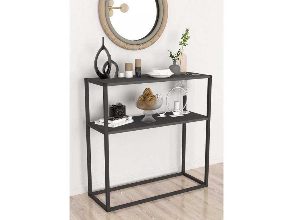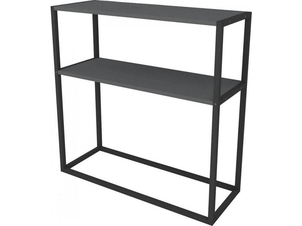 Konzolový stolek - regál je z kovového rámu v matné černé barvě a odkládací deska je vyrobena z kvalitní LTD desky v barvě antracit. Dodáváme v demontovaném stavu.Doplňkové parametry