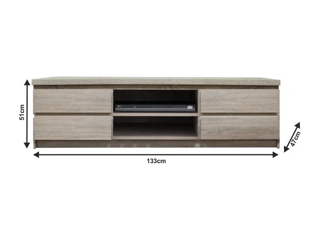 RTV stolek čtyřzásuvková, TYP 06. Materiál: DTD laminovaná, ABS hrany. Barevné provedení: dub sonoma. Rozměry ŠxHxV: 133x47x51 cm. Tloušťka materiálu korpus: 16 mm Tloušťka materiálu vrchní desky: 25 mm Dodávané v demontu.