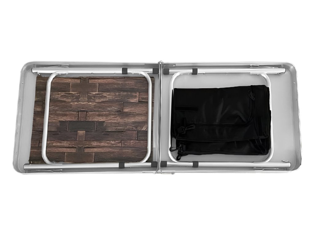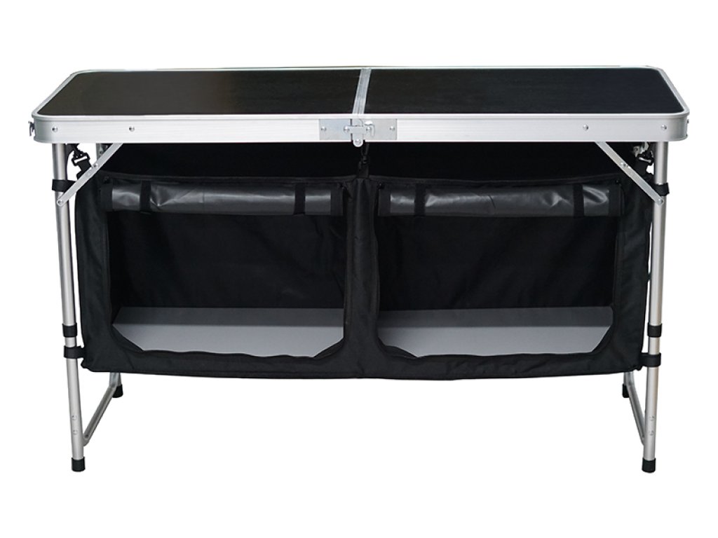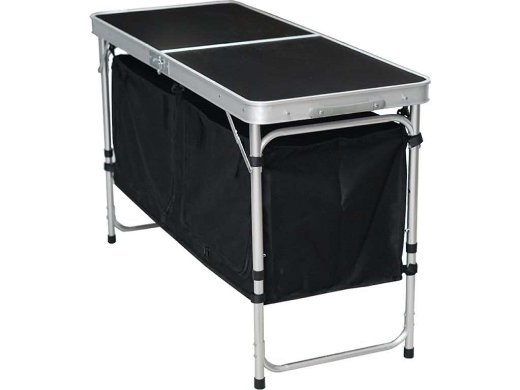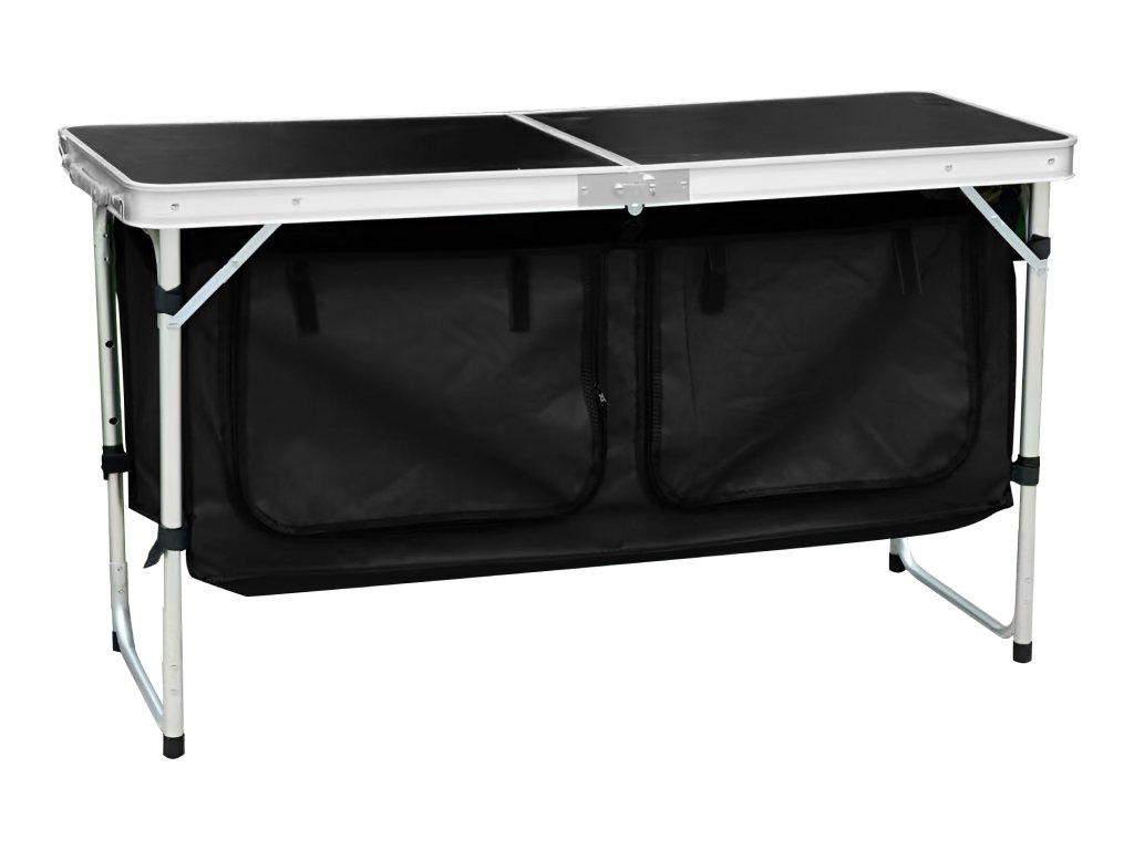 Skládací kempinkový stůl s organizérem, 120 cm, hliník/MDF, KEPI TYP 3