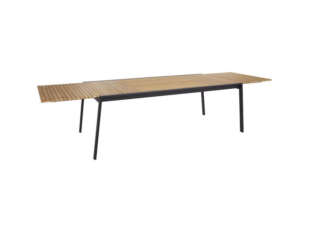 Luxusný jedálenský stôl, ktorý vynikne a rozšíri domov. Krásne teakové rebrá sú vystužené rovnými oceľovými nohami. A pre veľké stretnutia možno skryté predlžovacie listy vyklopiť pomocou fantastického motýlieho riešenia. Stôl plne vysunutý má dĺžku 3,2 metra.Čisté línie a nadčasový dizajn s moderným nádychom. Naos je séria, kde je zmes materiálov vyrobená s maximálnou jemnosťou. Dosku stola odporúčame ošetriť teakovým olejom jeden až dva krát za rok. Teakový olej nájdete v TUMateriál: hliníkový rám a teakové drevoFarba rámu: čiernaRozmery: šírka: 220 až 320 cm hĺbka: 100 cm výška: 73 cm Hmotnosť: 73 kg