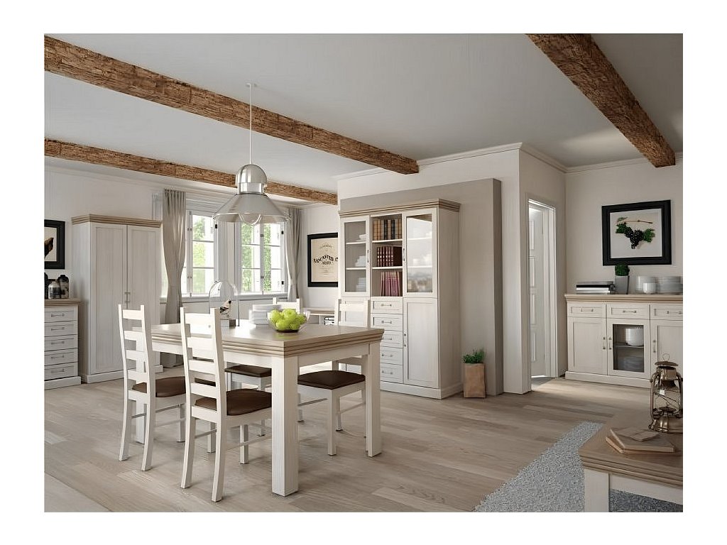 RTV stolek RN se šesti šuplíky otevřenými úložnými prostory z elegantního sektorového systému Royal v provensálském stylu. Vhodný na zařízení obývacích pokojů či ložnic. Materiál: korpus DTD laminovaná + ozdobné lišty. Barevné provedení: sosna skandinávská v kombinaci s dubem divokým. Rozměry ŠxHxV: 127x46x75 cm Tloušťka materiálu korpus: 15 mm Tloušťka materiálu vrchní desky: 22 mm Dodávané v demontu.