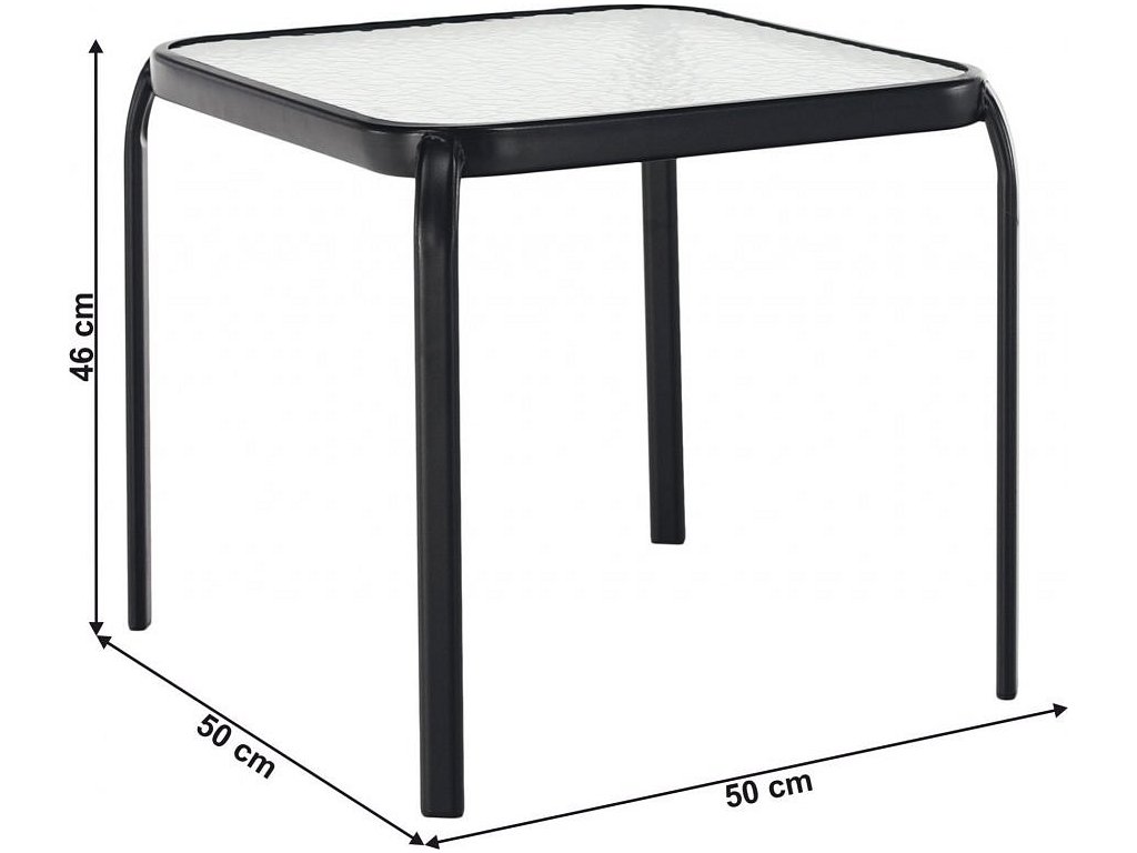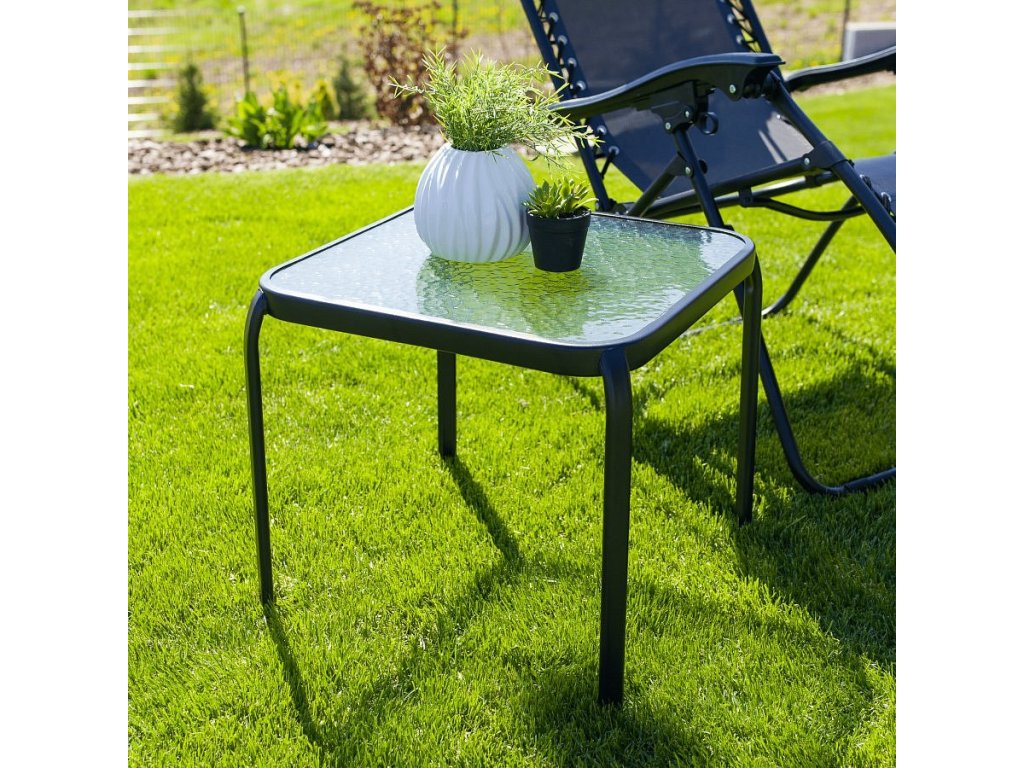 Materiál: tvrzené sklo / ocel Barva: černá Rozměry (ŠxHxV): 50x50x46 cm Príruční stolek zahradní Dodávané v demontu