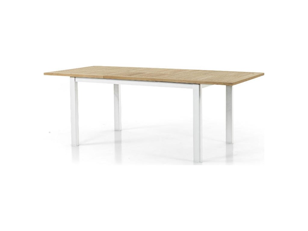 Elegantný rozkladací stôl v kombinácii s teakovým drevom a hliníkovým rámom. Rám: hliníková konštrukcia Farba: biela, čierna a hnedá kakiRozmery: 152 až 210 x 92 x 75 cm (Š/H/V)Hmotnosť: 34 kg