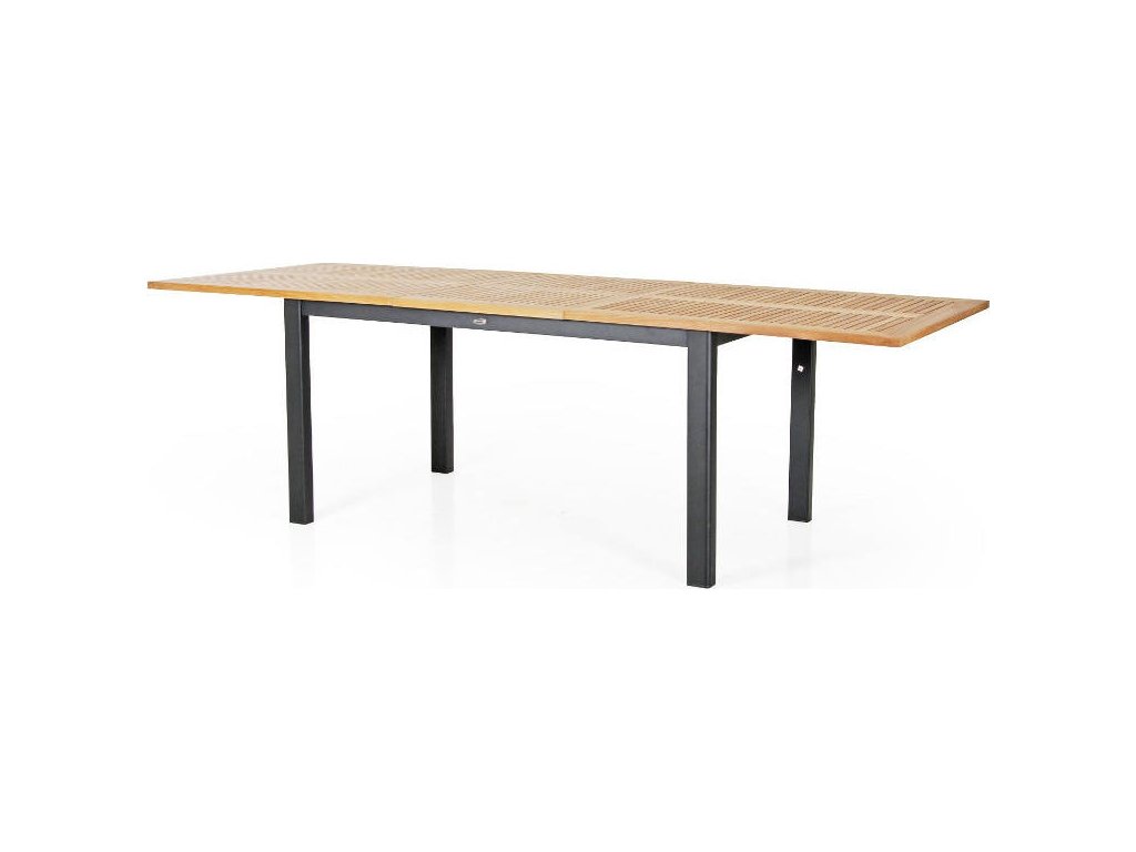 Elegantný rozkladací stôl v kombinácii s teakovým drevom a hliníkovým rámom. Rám: hliníková konštrukcia Farby rámu: biela, čierna a hnedá kakiRozmery: (194-252) x 92 x 75 cm (Š/H/V)Hmotnosť: 38 kg