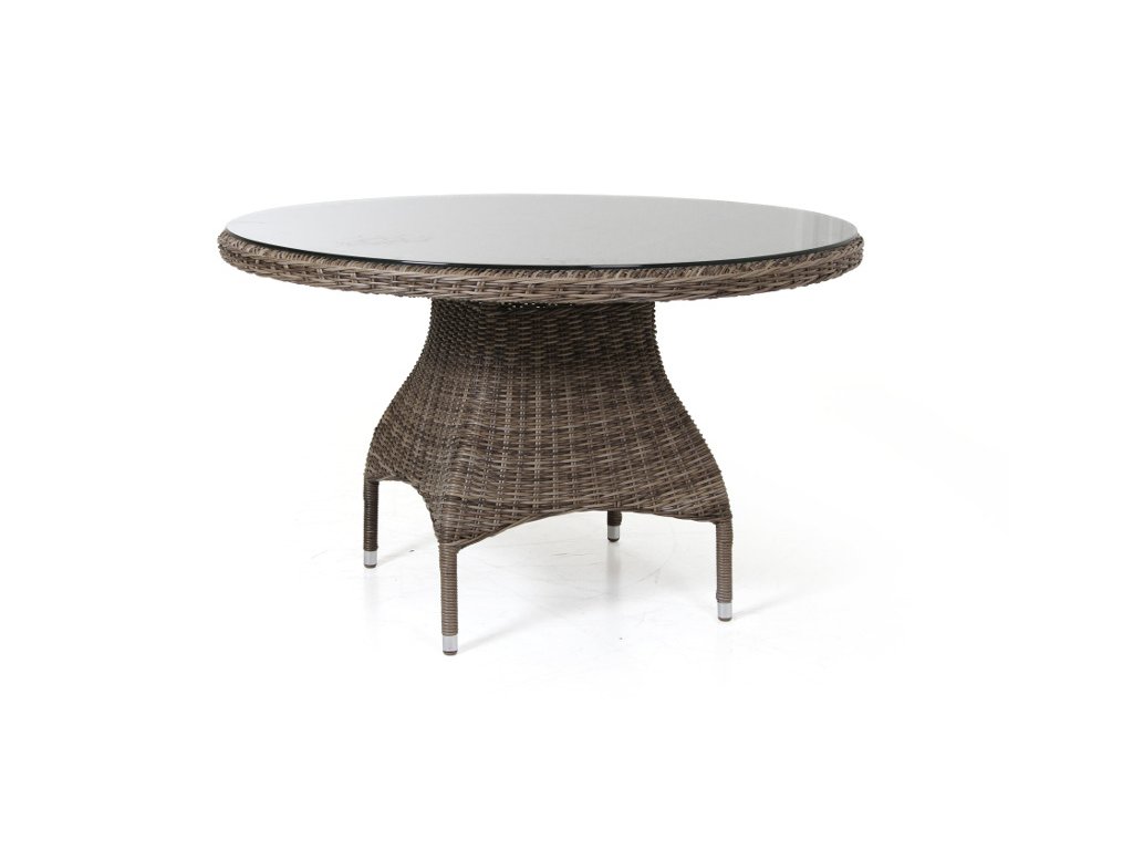 Záhradný stôl z umelého ratanu. Súčasťou stola je bezpečnostné sklo. Záhradný stôl je UV stabilný, odolný voči vplyvom počasia.Výplet: 4,5mm polguľatý hnedý rustik umelý ratanRám: hliníková konštrukciaRozmery: priemer: 120 cmvýška: 74 cmHmotnosť: 33 kg