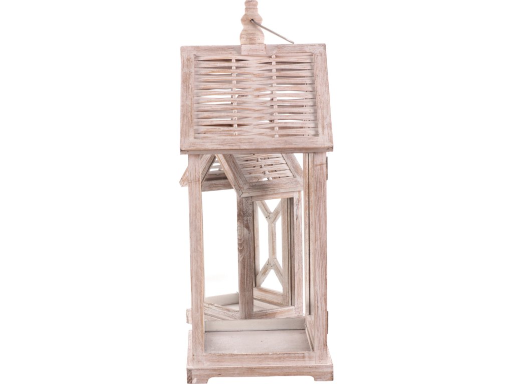 Sada 2 dřevěných luceren ve tvaru domku přináší do vašeho prostoru příjemnou a útulnou atmosféru. Celá je vyrobena ze dřeva v přírodním světlejším odstínu, který podtrhuje její elegantní vzhled. Velká čirá skla na všech čtyřech stěnách umožňují krásně rozzářit prostor světlem svíčky. Kovové madlo nad střechou usnadňuje zavěšení a manipulaci. Sada obsahuje dvě různé velikosti, které společně vytvoří kouzelný dekorační efekt na stůl, terasu nebo v interiéru.Doplňkové parametry