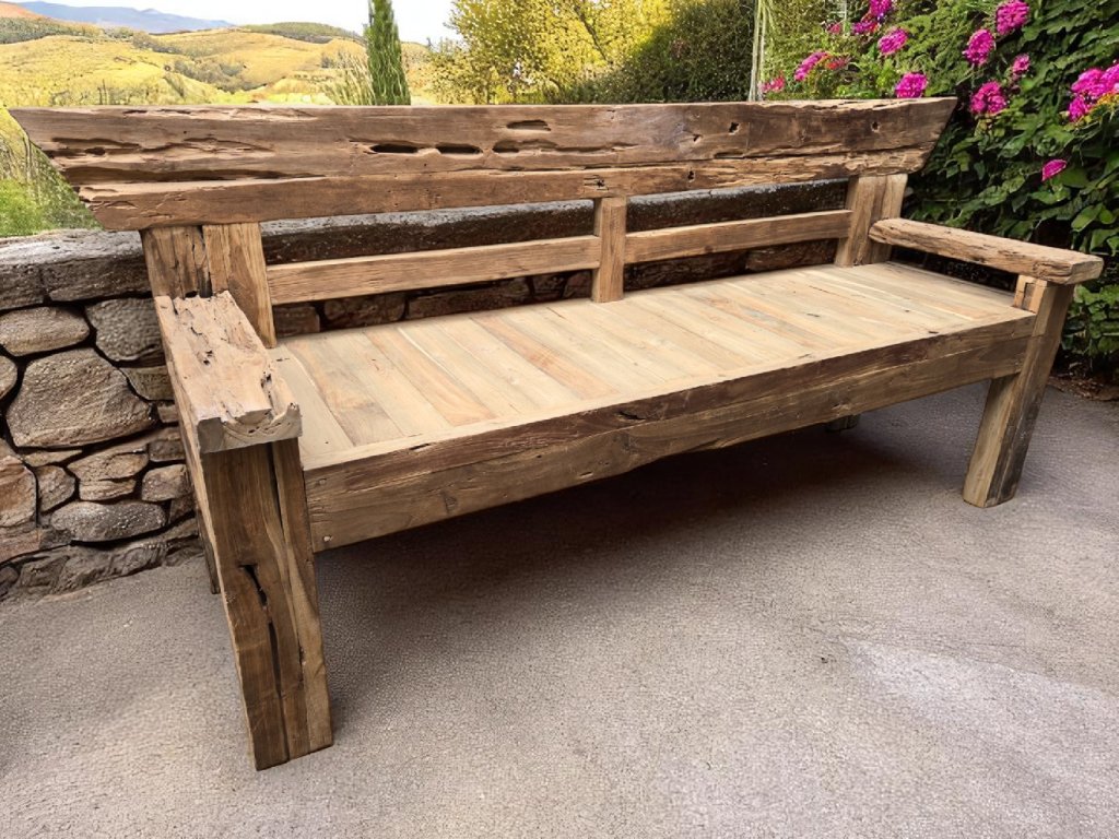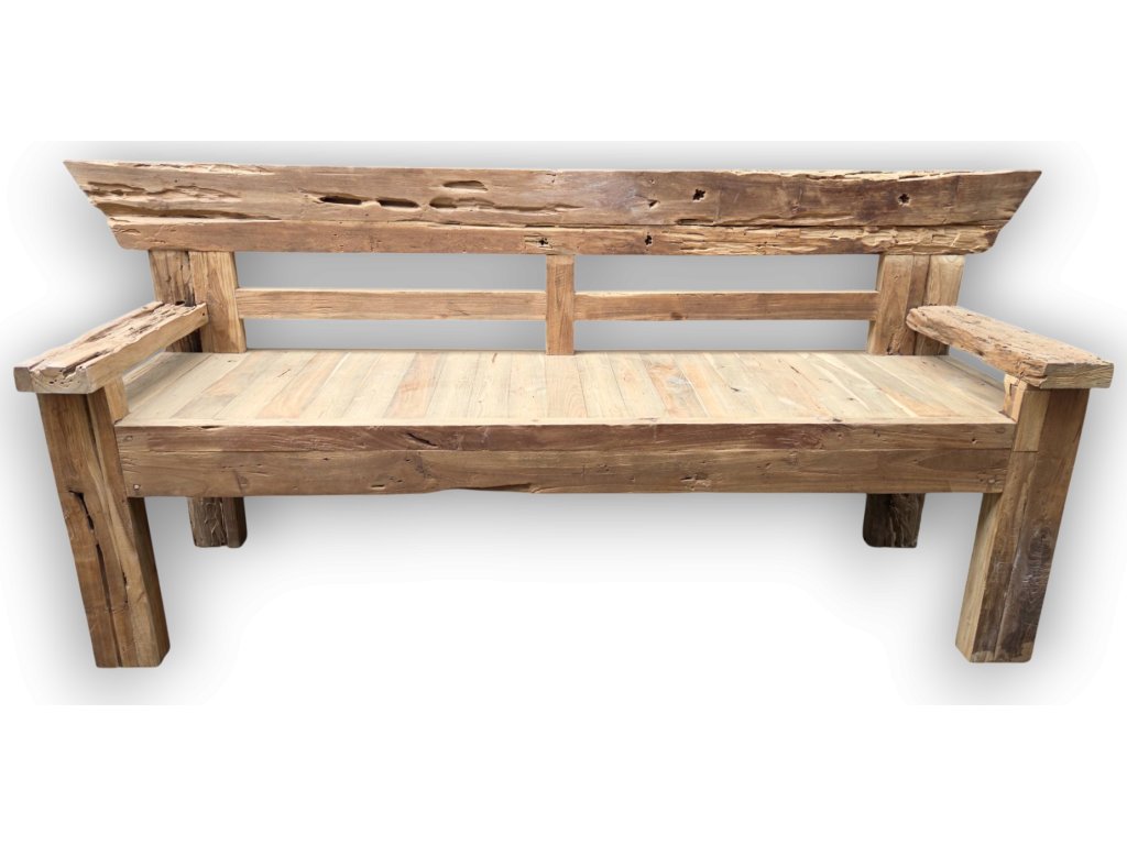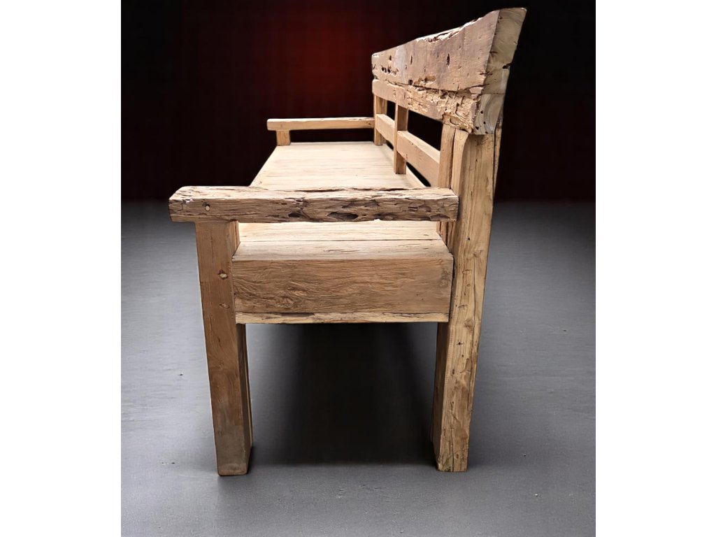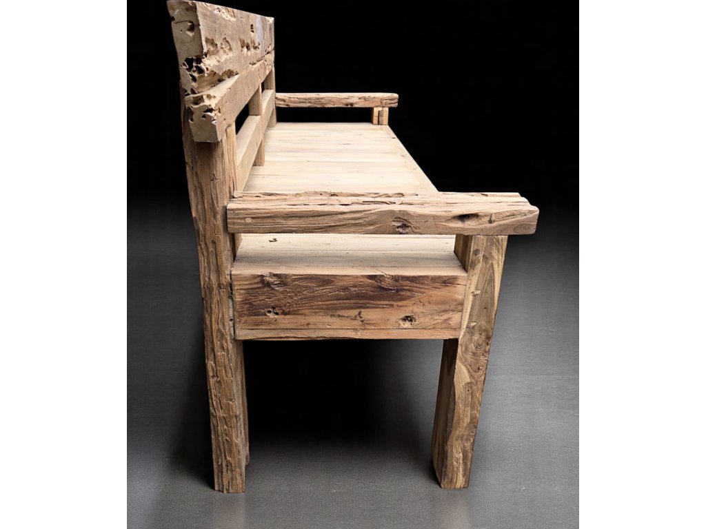 Tato originální lavice je vyrobena z masivního dřeva starého až 200 let, pocházejícího ze zbořených mostů, budov a lodních vraků. Každý kus je ručně zpracovaný a nese autentické známky času – praskliny, opotřebení a strukturu, které mu dodávají jedinečný charakter a charisma.