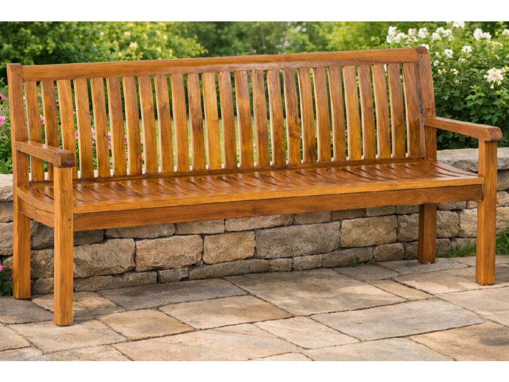Masivní lavice PIETRO vyrobená z kvalitního jádrového teaku s dokonalým dílenským zpracováním.