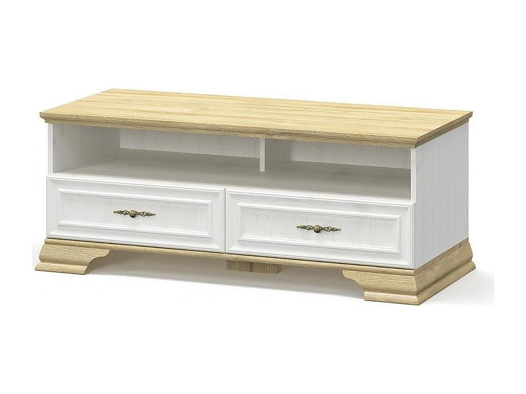 Televizní stolek se 2 zásuvkami ze sektorové řady nábytku v romantickém stylu. Nábytek je vyroben z kvalitní LTD v kombinaci s MDF v barevné kombinaci borovice andersen/zlatý dub. V naší nabídce najdete další jednotlivé prvky tohoto nábytku, ze kterého si můžete zařídit obývací pokoj dle vlastních potřeb. Dodáváme v demontovaném stavu.Doplňkové parametry