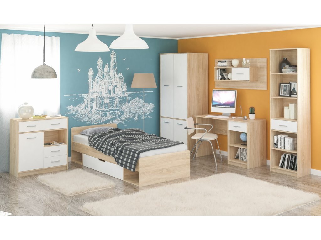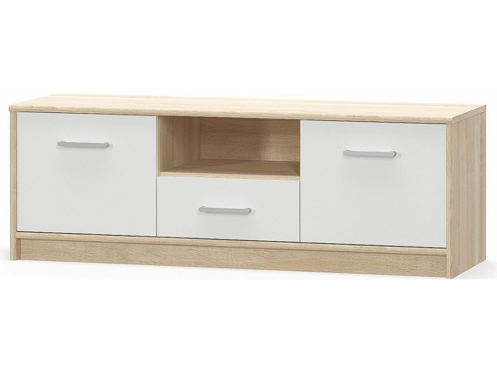Televizní stolek ze sektorového nábytku v moderním provedení vyroben z kvalitní LTD desky v barevné kombinaci dub sonoma / bílá mat. Stolek má 2 dvířka, polici a 1 praktickou zásuvku. Nabídka komponentů této sektorové řady umožňuje sestavit si nábytek do obývacího, dětského nebo studentského pokoje dle vlastních představ. Dodáváme v demontovaném stavu.Doplňkové parametry