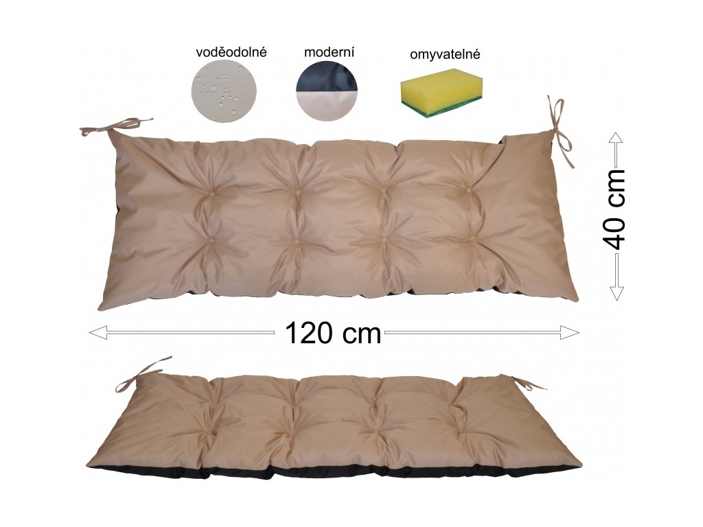 Polstr je vyrobený z voděodolné látky Oxford v béžové barvě.