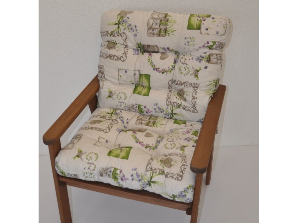 Univerzální samostatný polstr na dřevěné zahradní křeslo s nízkým opěradlem.> | Polstr můžete použít i na zahradní křesla s nižším opěradlem.