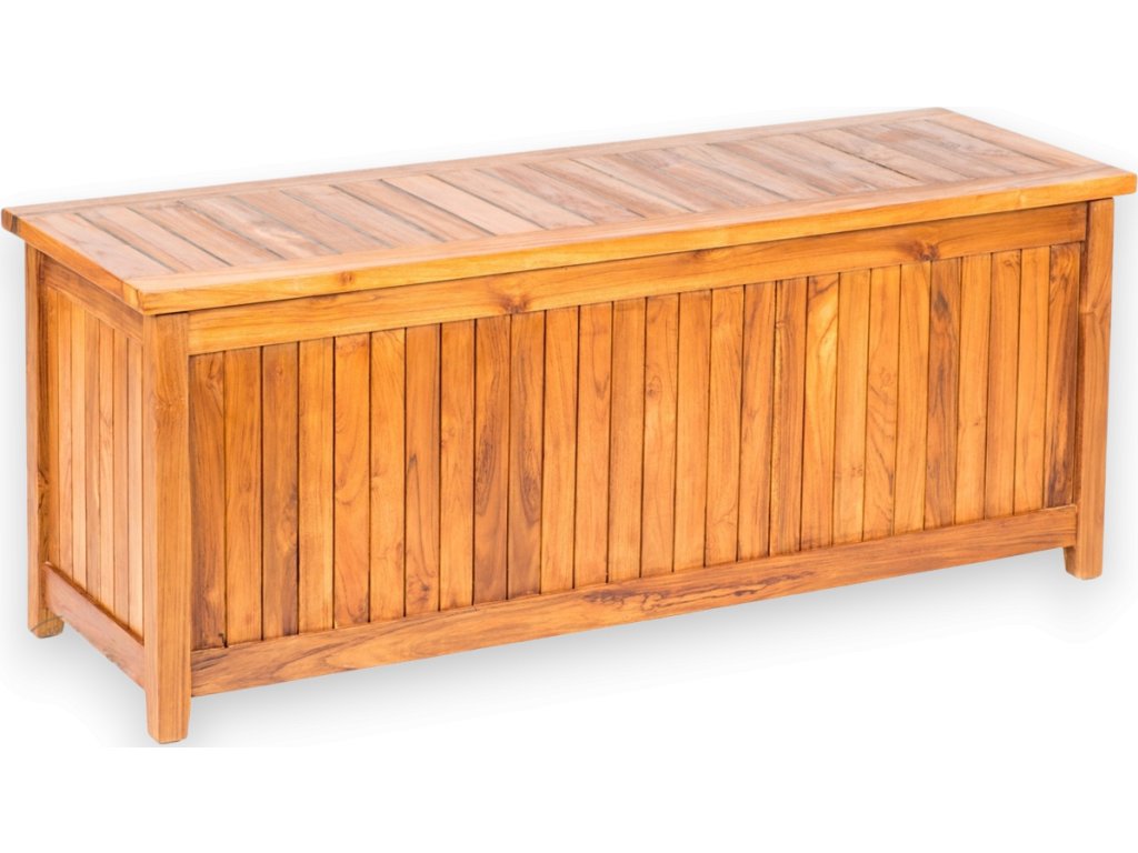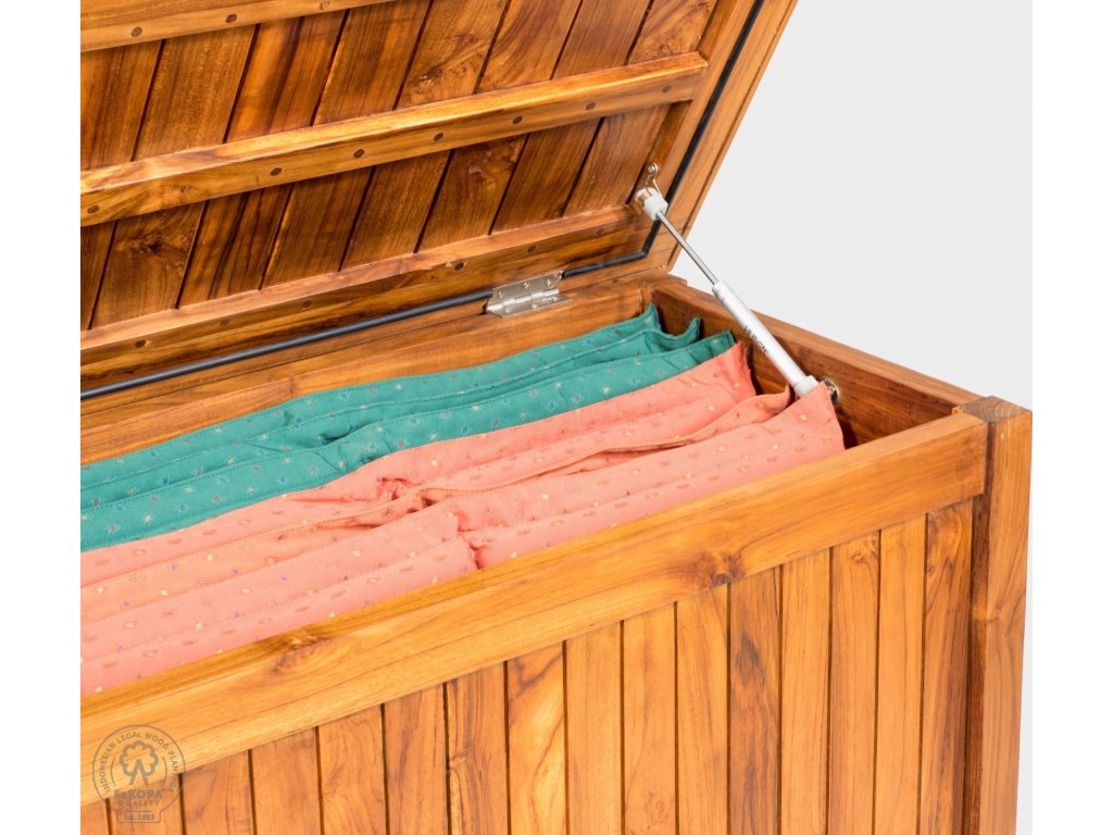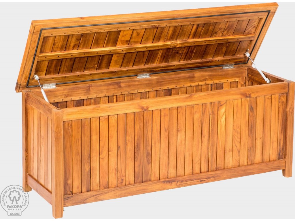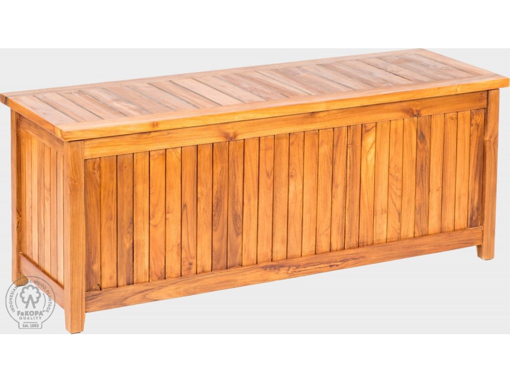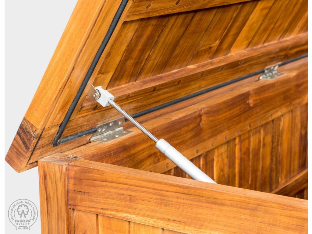 Masivní zahradní truhla LEONARDO vyrobená z kvalitního jádrového teaku s dokonalým dílenským zpracováním.