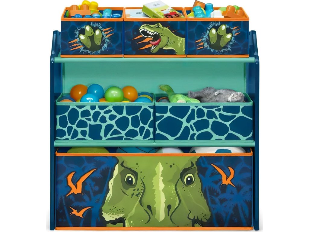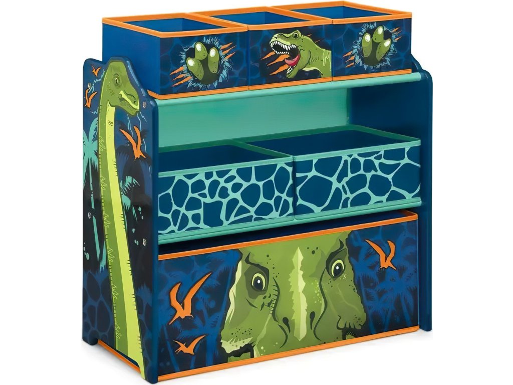 Dětský regál pro všechny kluky s motivem T-Rex v zajímavé barevné kombinaci. Nudné uklízení hraček se může stát zábavou a hračky si vždy najdou své místo v dětském pokoji. Organizér je ideální k uskladnění hraček, obsahuje 6 plátěných boxů, řešených tak, aby si děti mohly ukládat hračky samy.