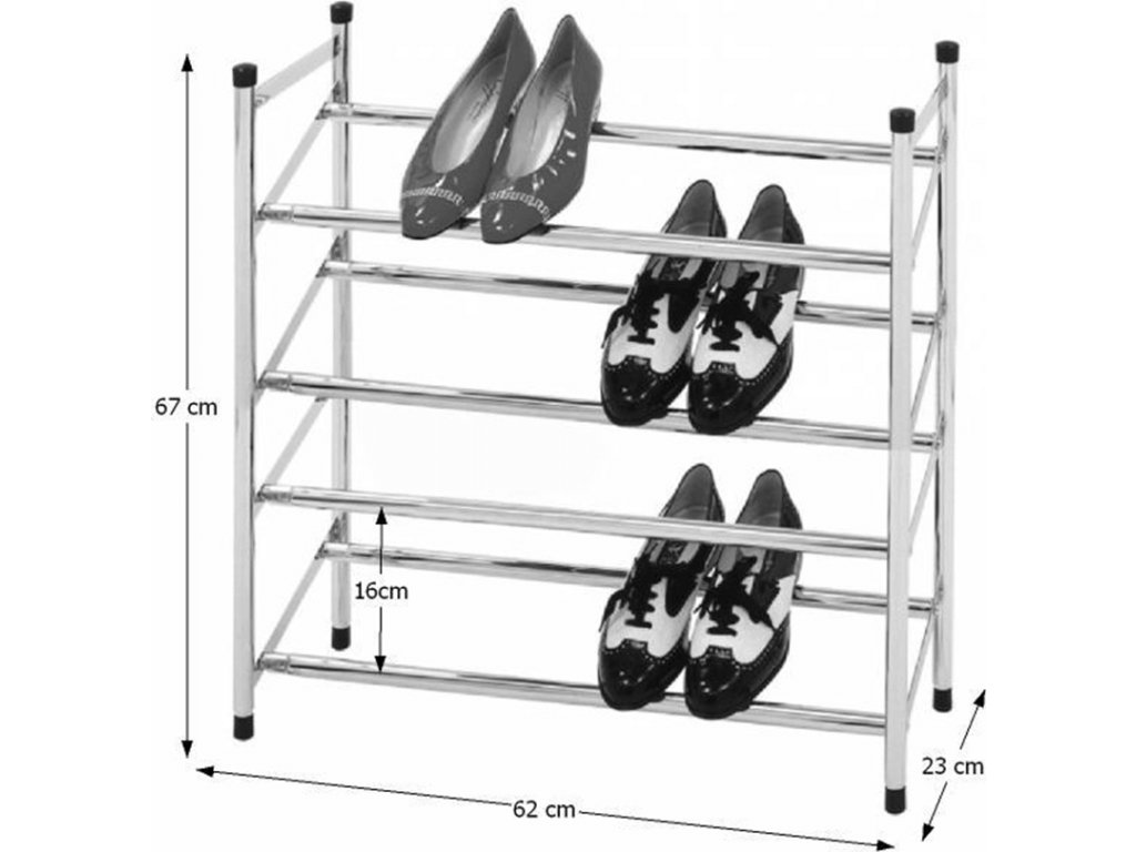 4-řadový nastavitelný botník DITA Materiál: chrom Barva: chromovaná Rozměry: (ŠxHxV): 62-110x23x67 cm nastavitelná šířka Dodávané v demontu