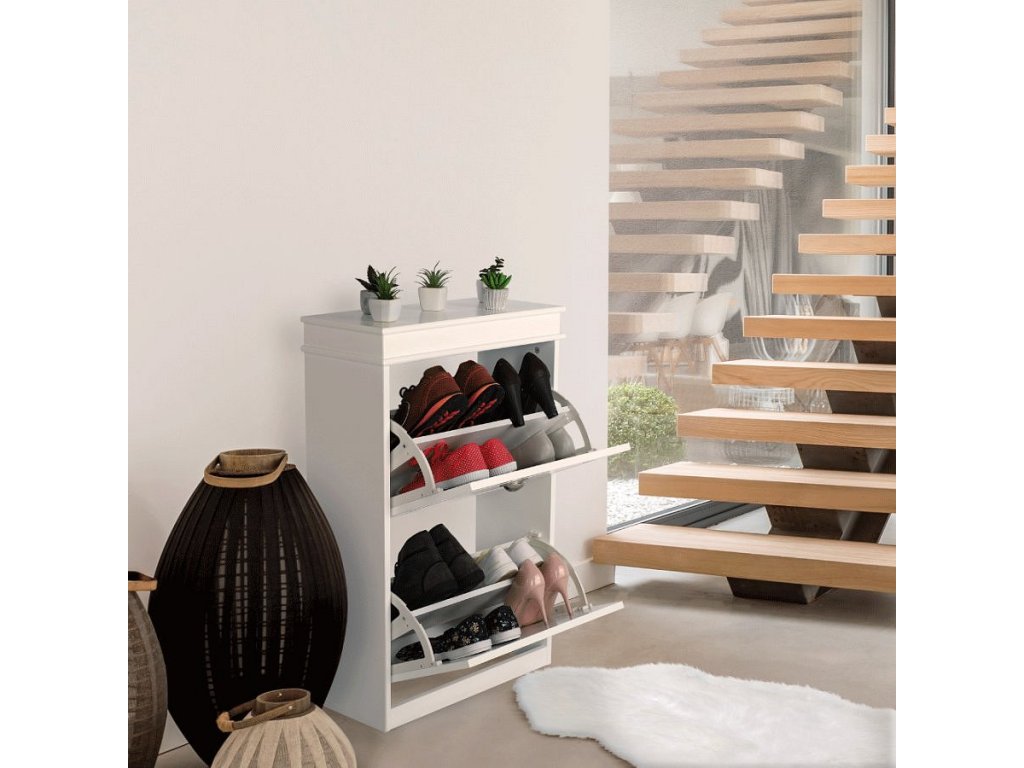 Barva: bílá Materiál: MDF / dřevotříska Rozměry (ŠxHxV): 53,5x24x82,5 cm 2-řadový výklopný Dodávané v demontu.
