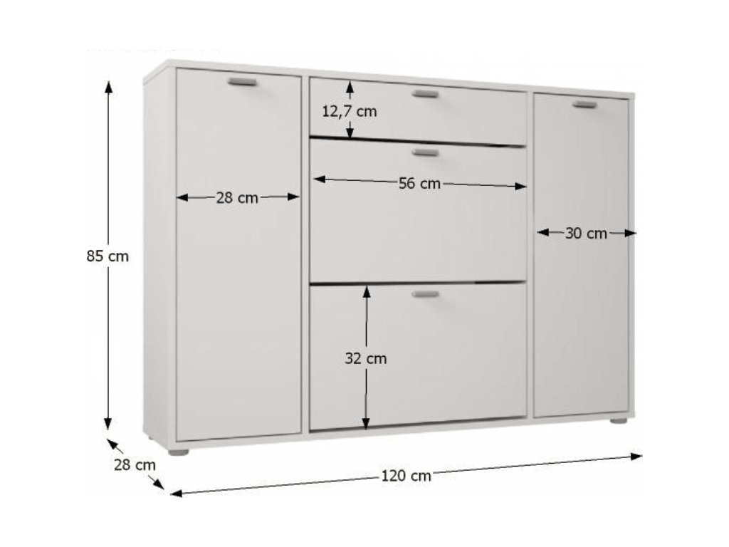 botník Anabela Materiálové provedení: DTD laminovaná Barevné provedení: bílá Rozměry ŠxHxV: 120x28x85 cm Tloušťka materiálu korpus: 16/10 mm Dodávané v demontu.