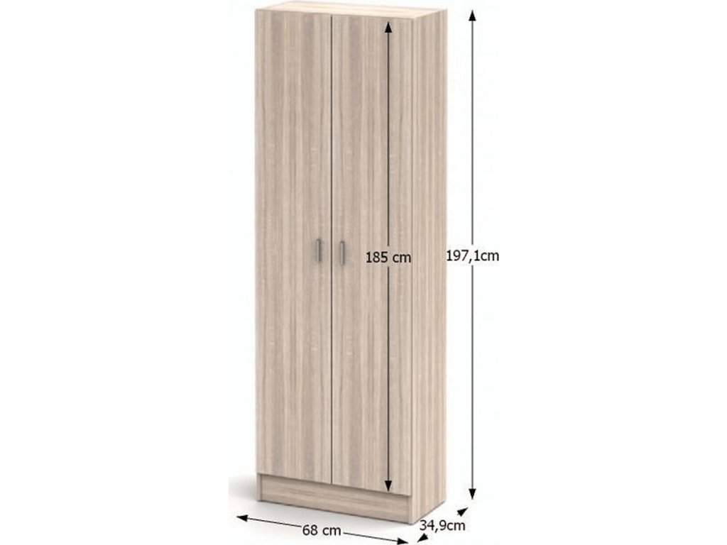 Botníková skříň MARÍNA. Materiál: laminovaná DTD Barva: dub sonoma Rozměry (ŠxHxV): 68x34,9x197,1 cm Tloušťka materiálu: 16 mm Dodávané v demontu.