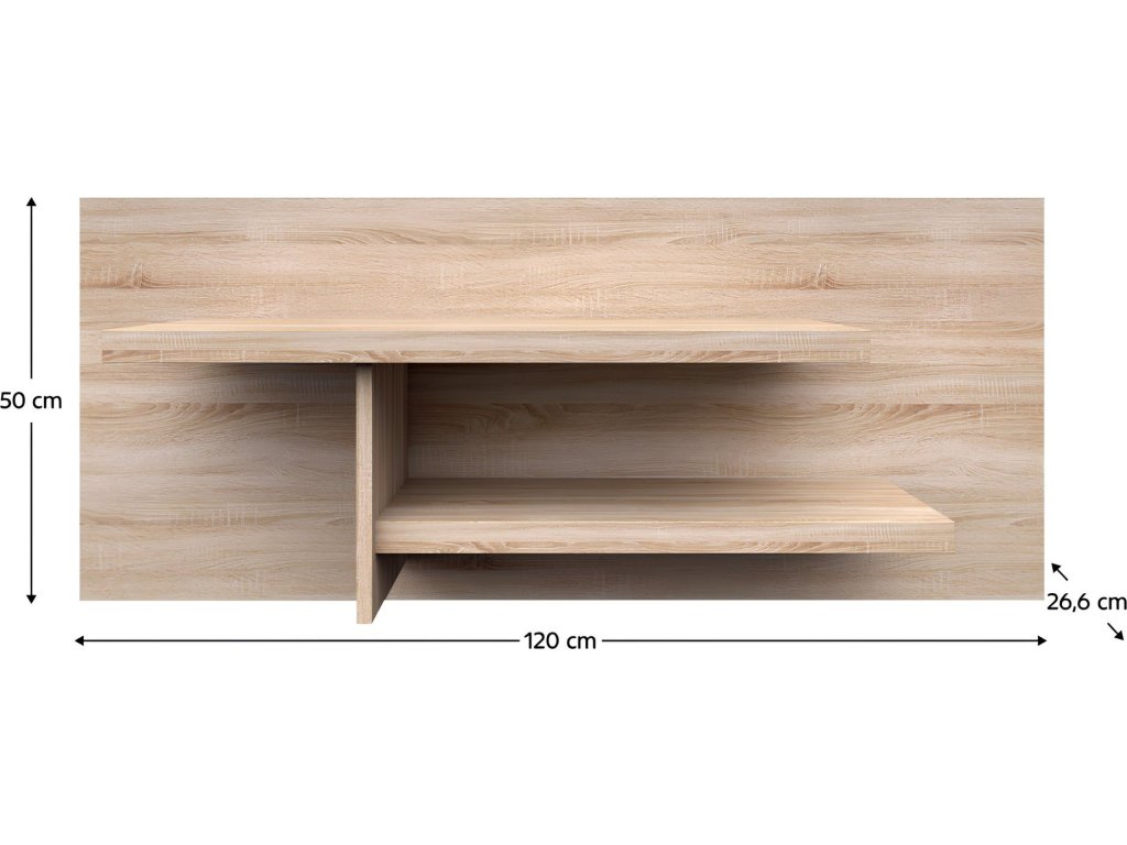 Panel 120, NORTY TYP 18 Materiál: DTD laminovaná Provedení: dub sonoma Rozměry (ŠxHxV): 120x25x50 cm Tloušťka materiálu: 32 mm Tloušťka materiálu zbývající části: 16 mm Dodávané v demontu.