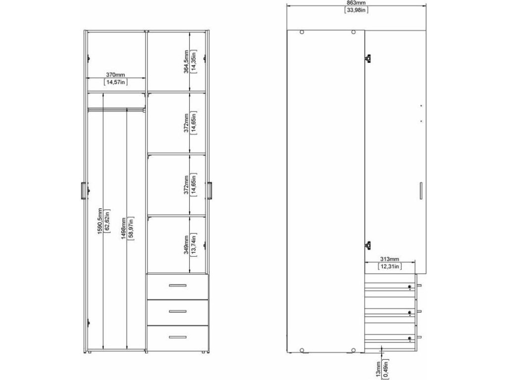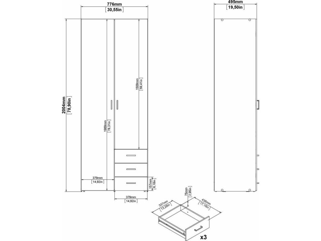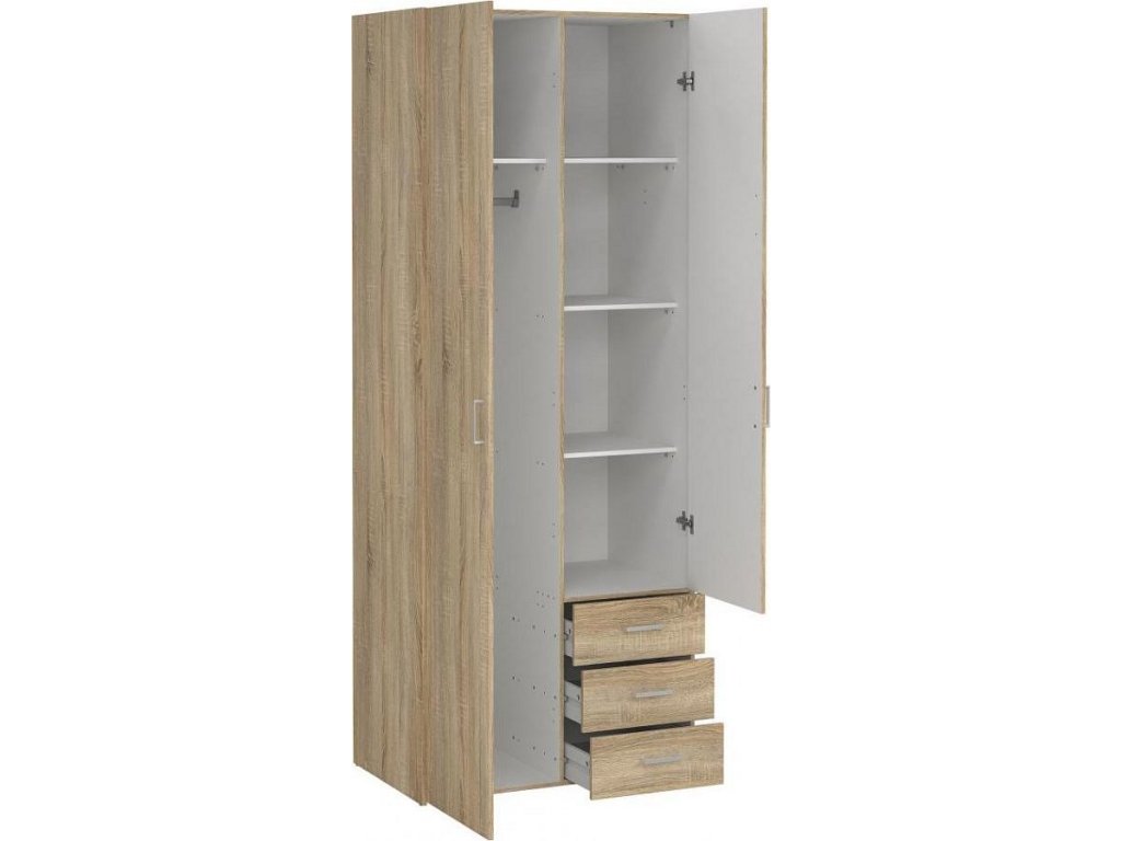 Šatní skříně Sid v nadčasovém designu bez námahy doplní jakýkoliv interiér. Vnitřní uspořádání nabízí dostatek úložného prostoru a možnost montáže dvířek na levou nebo pravou stranu také funkčnost a univerzální využití. Série Sid vyrobená ze snadno udržovatelného lamina obsahuje také noční stolky a komody v různých velikostech.