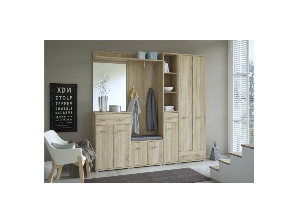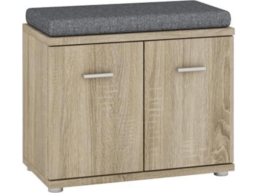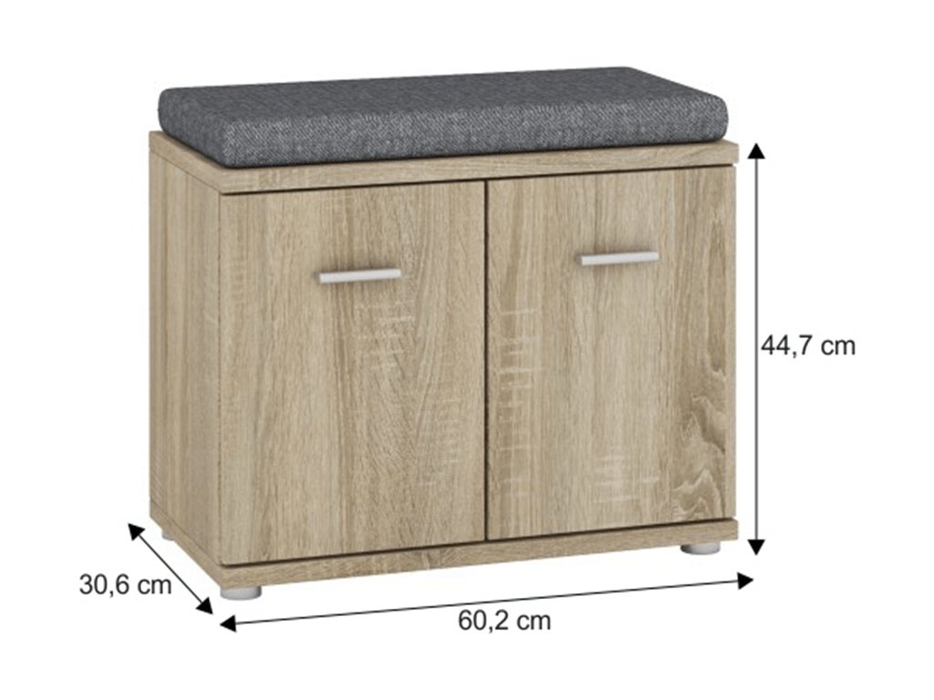 Skříňka / bez podušky, Mario New Typ F, komponent z předsíňové sestavy, Materiál DTD laminovaná, Barevné provedení: dub sonoma. Rozměry (ŠxHxV): 60,2x30,6x44,7 cm. Tloušťka materiálu: 16/22 mm Dvířka mají hladké zakončení.