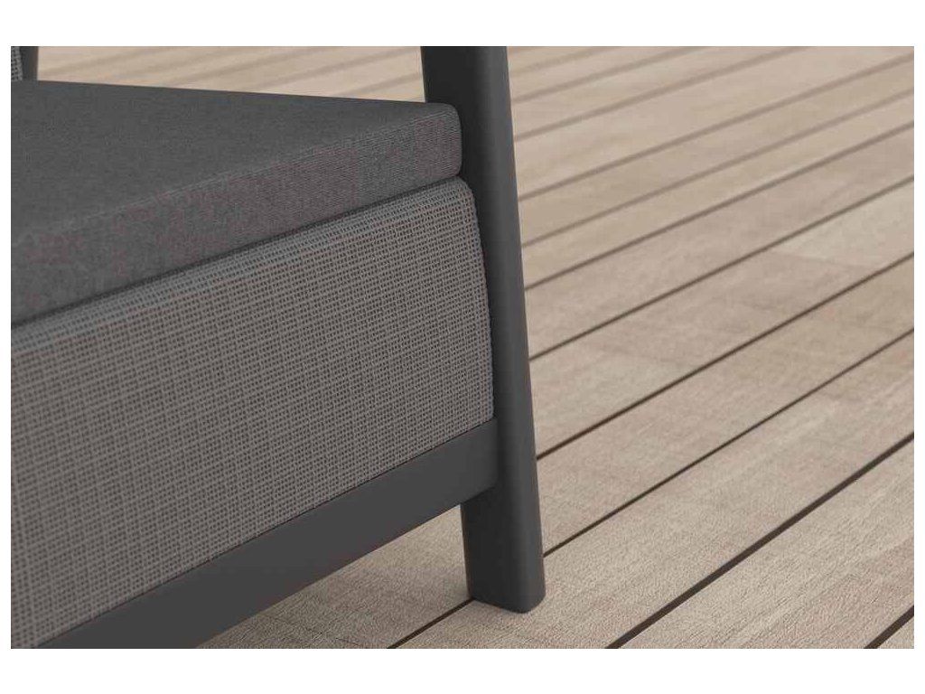 Lavice zaujme svým rustikálním, přírodním vzhledem s efektem juty, který působí hřejivě a přirozeně, a zároveň si zachovává moderní, čisté linie typické pro skandinávský styl. Dvoubarevné provedení dodává nábytku elegantní vzhled a umožňuje snadné sladění s různými typy venkovního i interiérového zařízení.