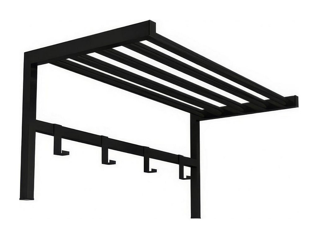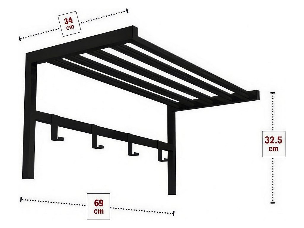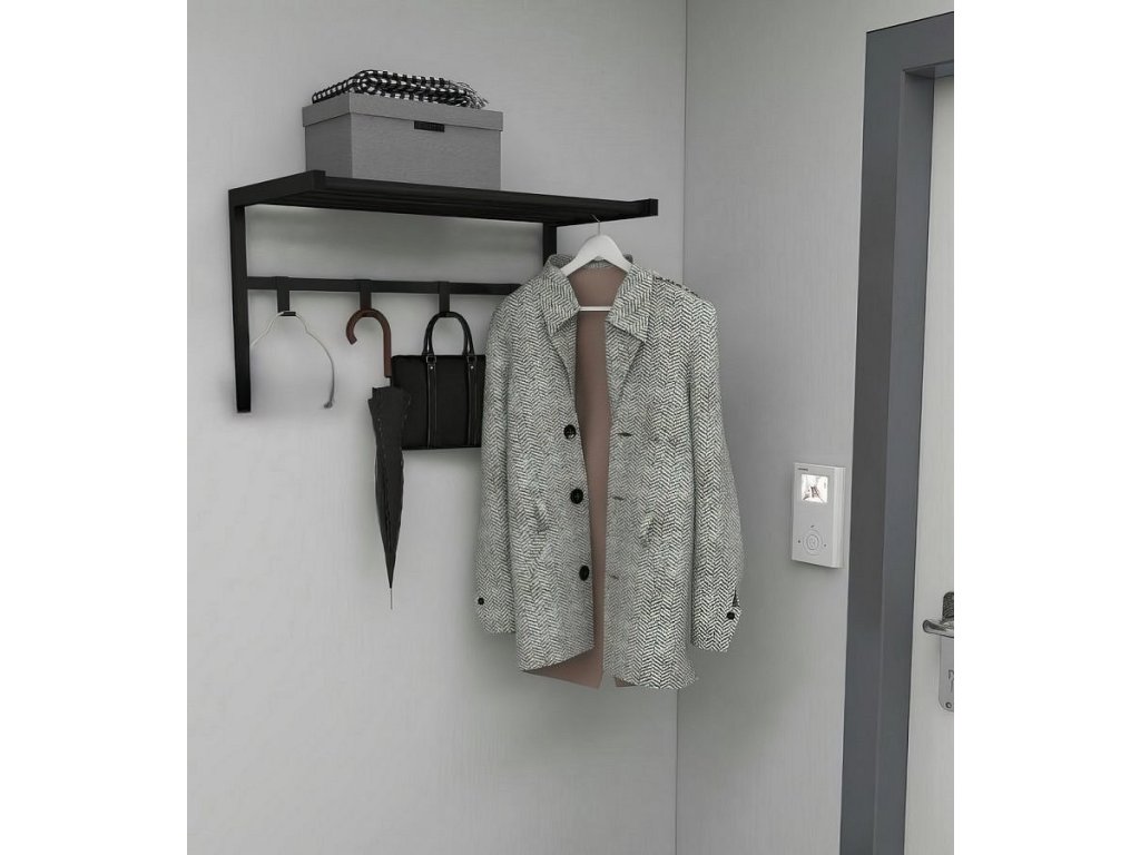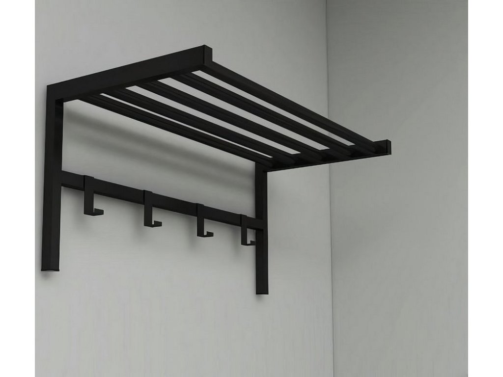 Nástěnný věšák s policí je vyroben z kovu v černé barvě. Dodáváme v demontovaném stavu.Doplňkové parametry