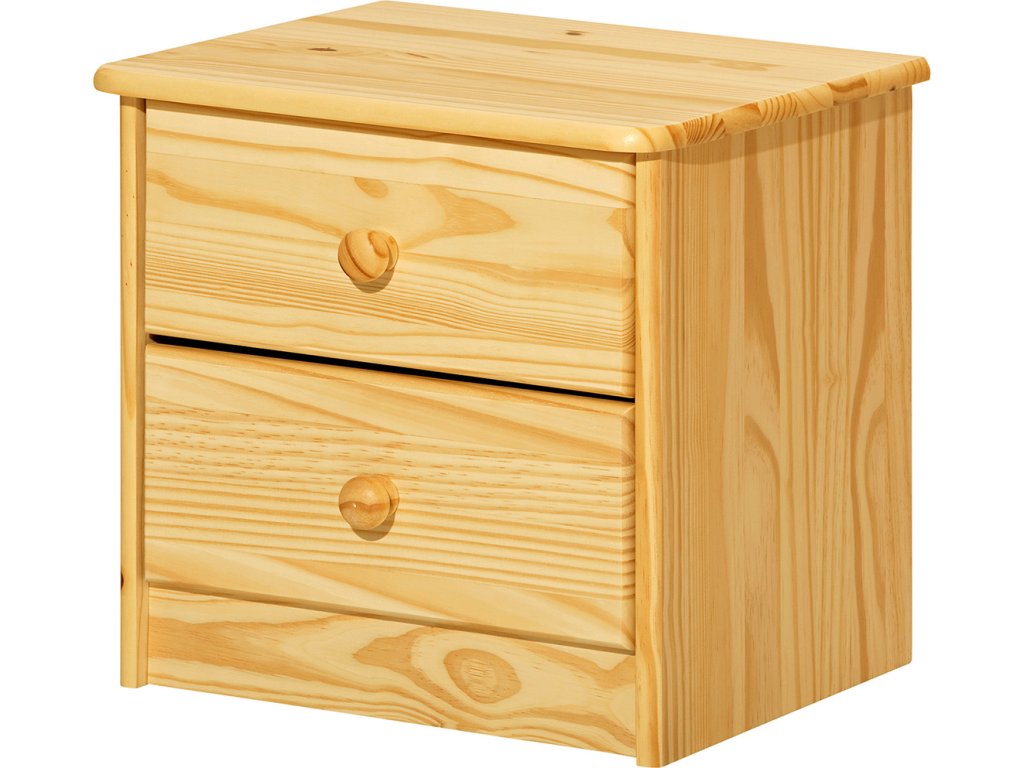 materiál masiv borovice, lakované provedení 2 zásuvky s kovovými pojezdy, hloubka zásuvky 27,5 cm
