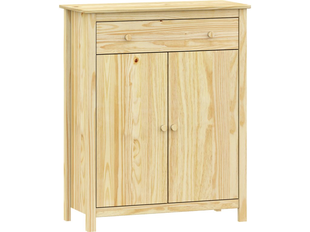 materiál masiv borovice, lakované provedení 1 zásuvka s kovovými pojezdy, 2 plné dveře, 1 police maximální nosnosti uvedeny v návodu k montáži