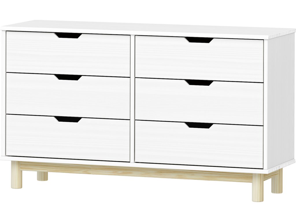 materiál masiv borovice, barevné provedení bílý lak 6 zásuvek s kovovými pojezdy