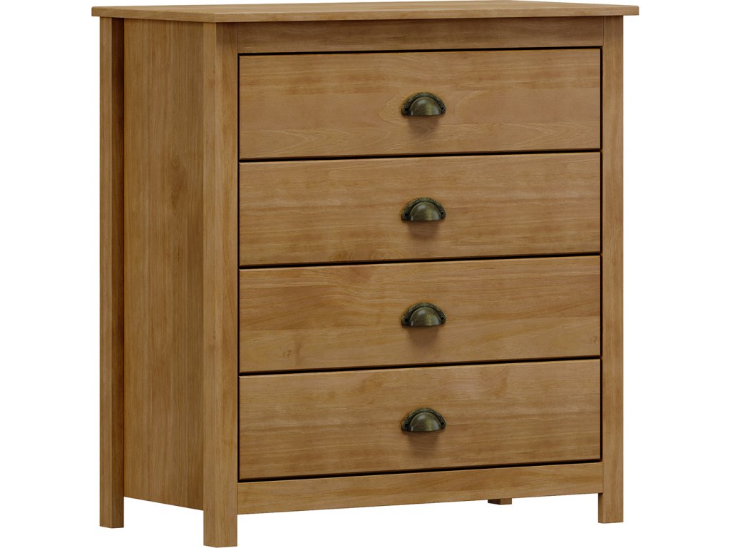 materiál masiv borovice, barevné provedení dub čtyři zásuvky s kovovými úchytkami a pojezdy