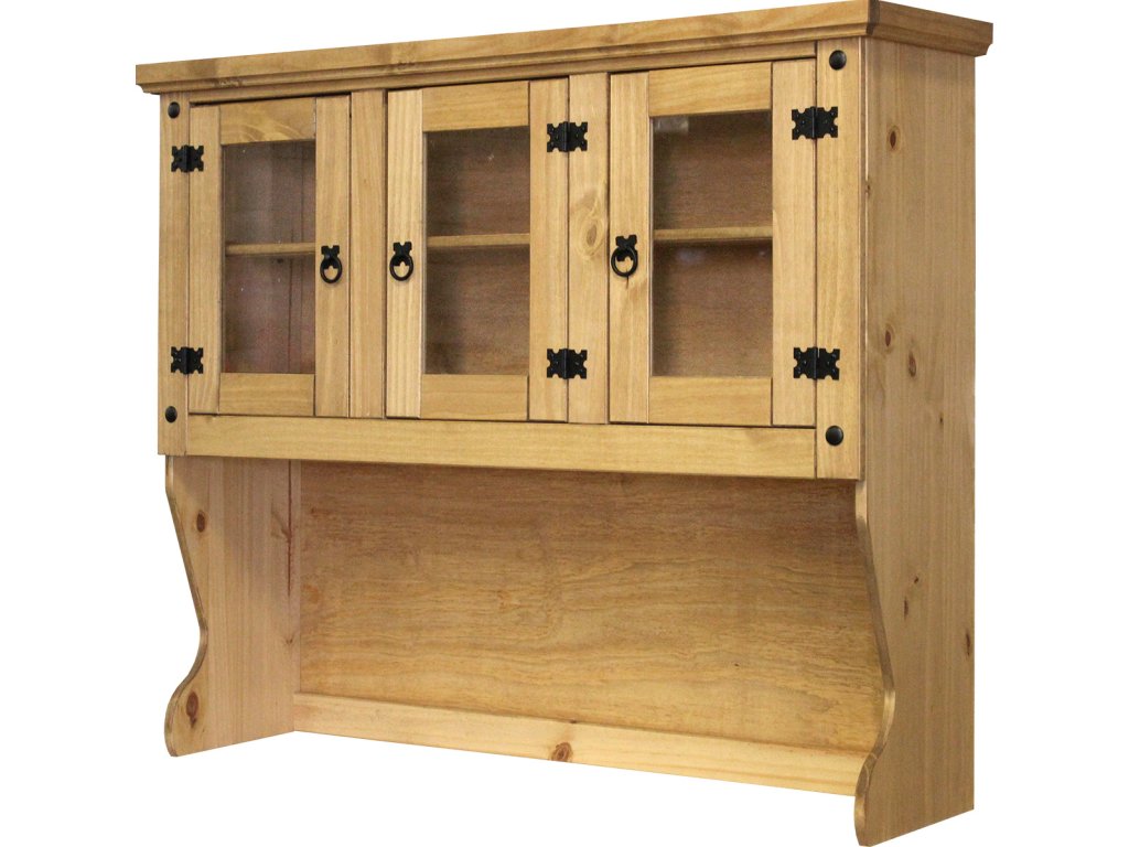 materiál masiv borovice voskovaná v medovém odstínu 3 prosklená dvířka, 1 police, kovové ozdobné úchytky vhodný doplněk ke komodě CORONA 1639 nebo 1632 součást sestavy Corona