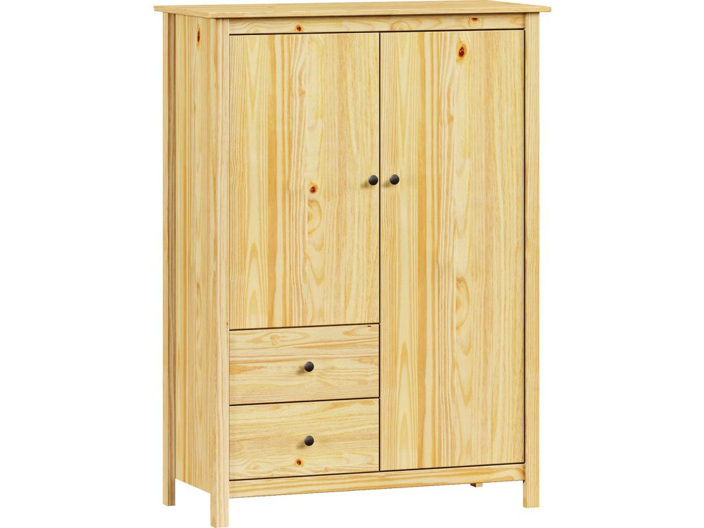 materiál masiv borovice, lakované provedení kovové úchytky 2 dvířka a 2 zásuvky s kovovými pojezdy