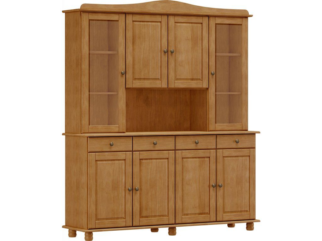 materiál masiv borovice, barevné provedení dub v dolní části 4 plné dveře, 4 zásuvky s kovovými pojezdy v horní části 2 prosklené a 2 plné dveře