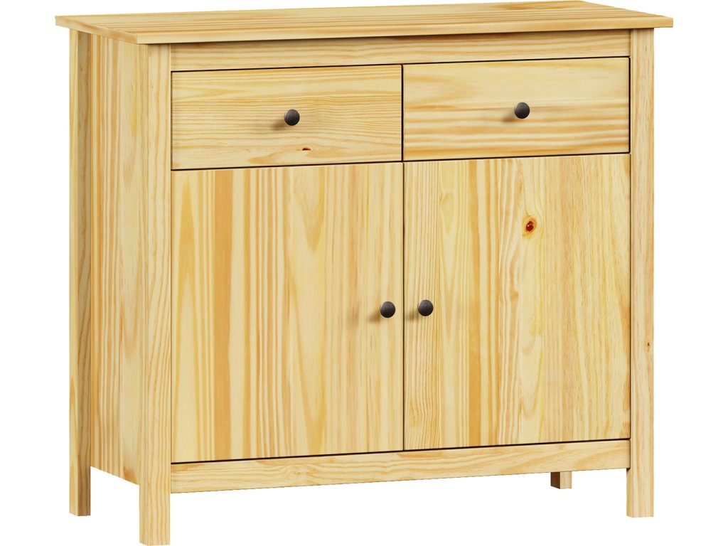 materiál masiv borovice, lakované provedení kovové úchytky 2 zásuvky s kovovými pojezdy, 2 plné dveře, 1 police vhodný doplněk nástavec 8096K