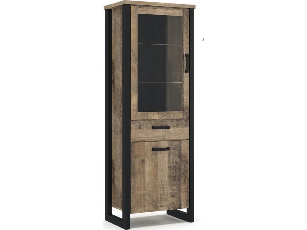 Vitrína vysoká se 2 dvířky a zásuvkou v industriálním stylu je vyrobena z LTD desky v barevném provedení dub grange. Stabilní konstrukce s nožkama je z desky MDF černé barvy. Úchyty jsou také černé. Nabídka komponentů této sektorové řady umožňuje sestavit si nábytek dle vlastních představ. Dodáváme v demontovaném stavu.Doplňkové parametry