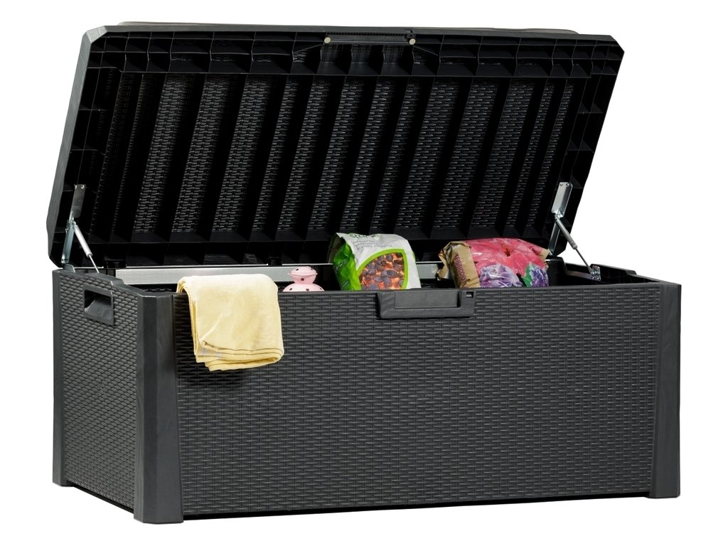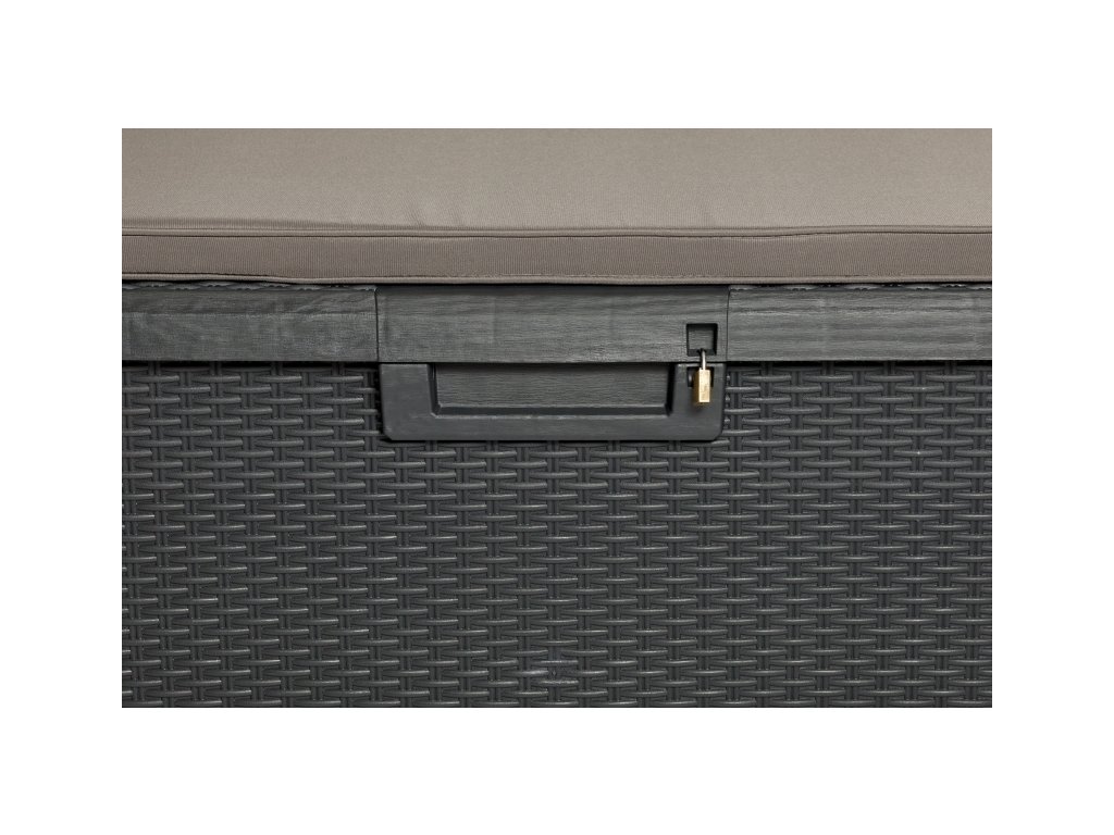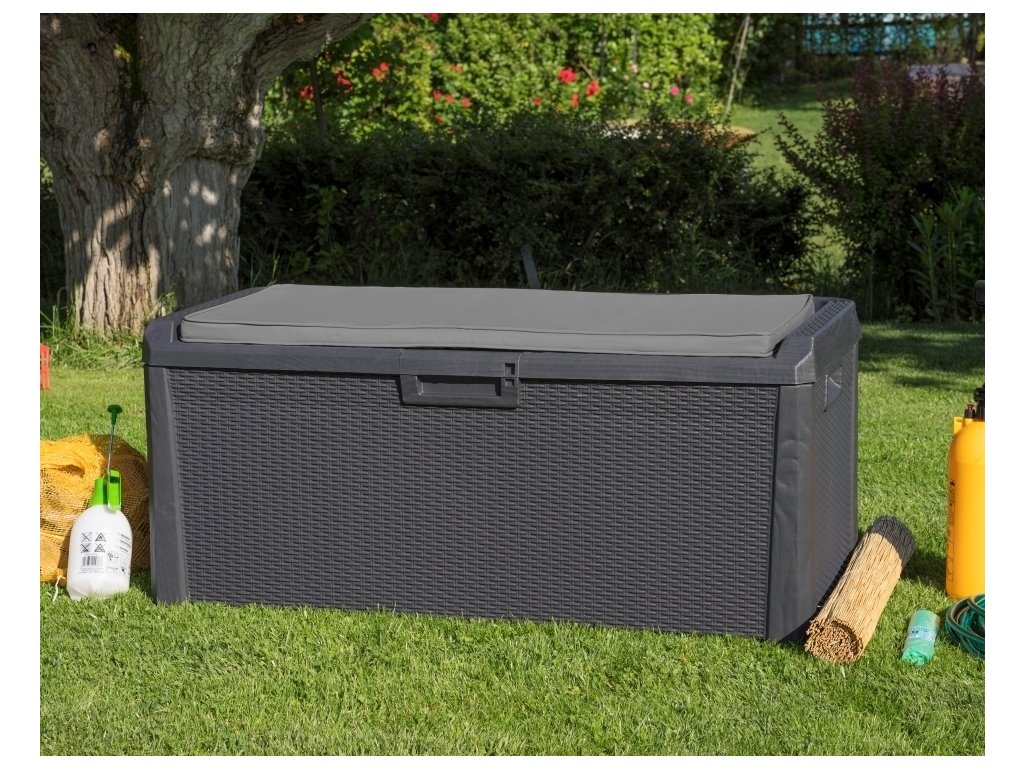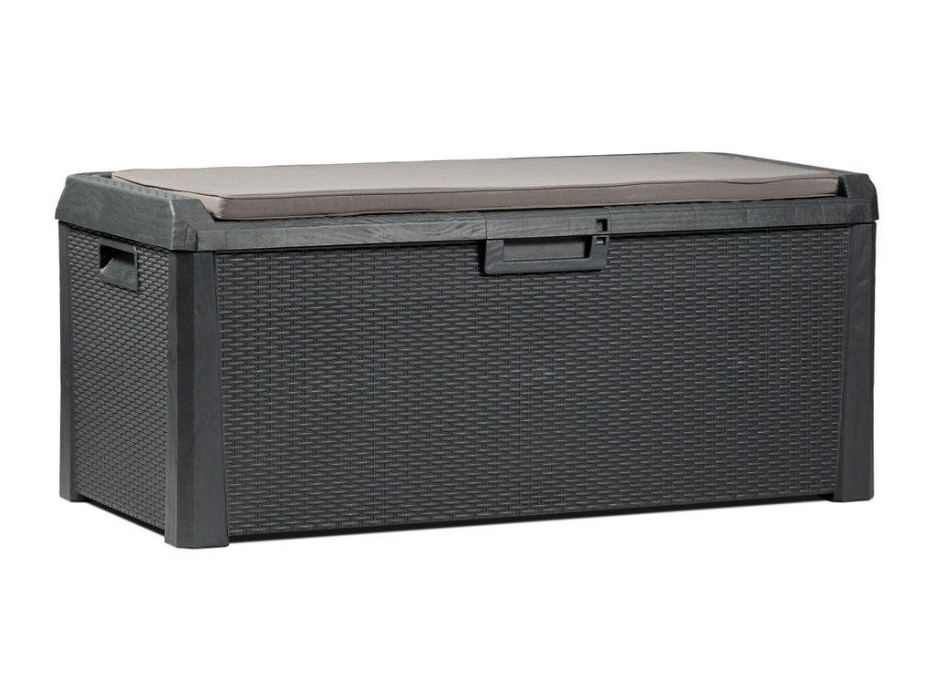 Tento box je ideální pro uložení podušek, hraček nebo nářadí, ale co je nejdůležitější, nabízí také pohodlné místo k sezení. S pohodlnou poduškou na víku a nosností až 360 kg se stává oblíbeným místem k odpočinku.
