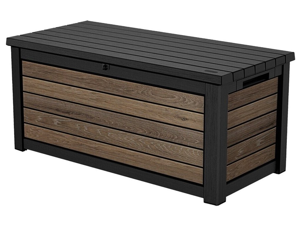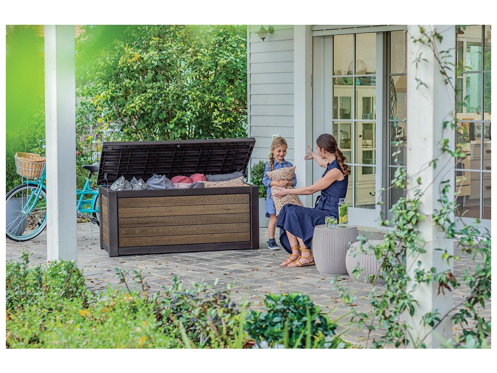 - Jednotný design: Úložný box v elegantním odstínu vlašského ořechu (walnut) je součástí řady SIGNATURE, což Vám umožní sjednotit exteriér s dalšími prvky, jako je zahradní domek nebo vysoká úložná skříň či skříň na popelnice.