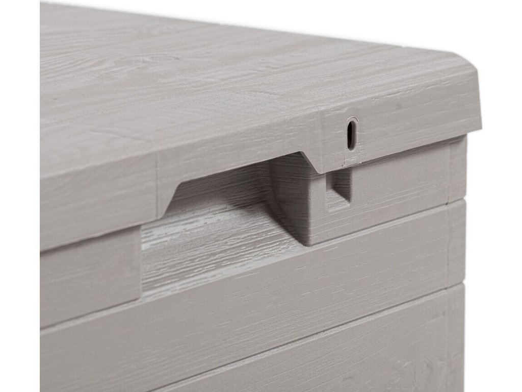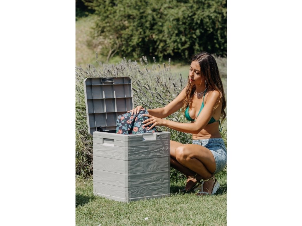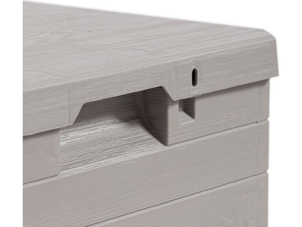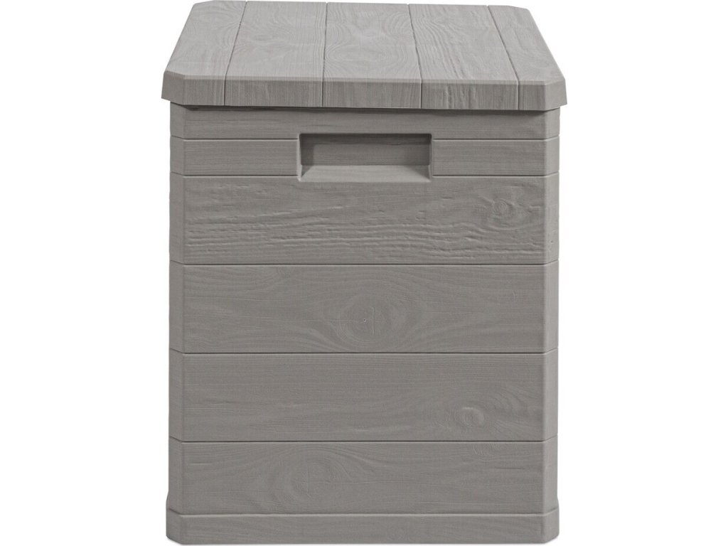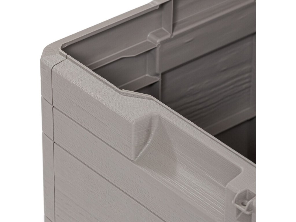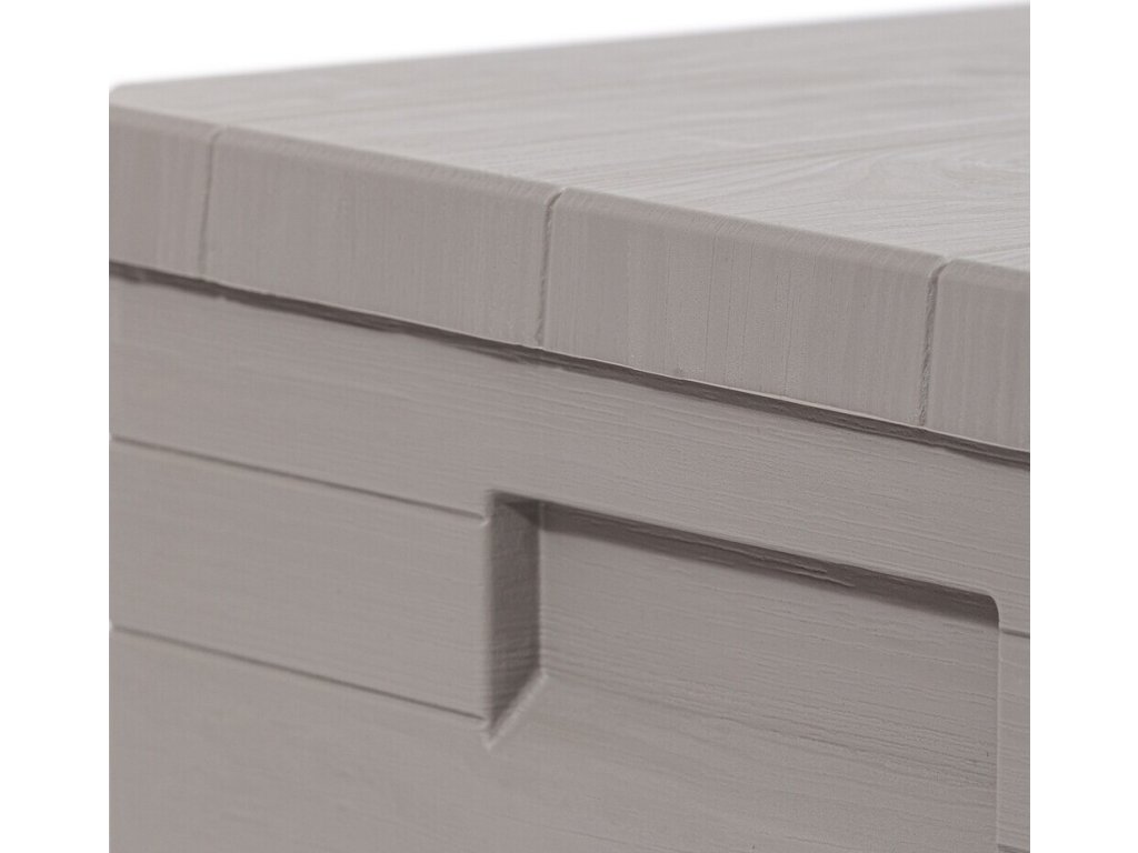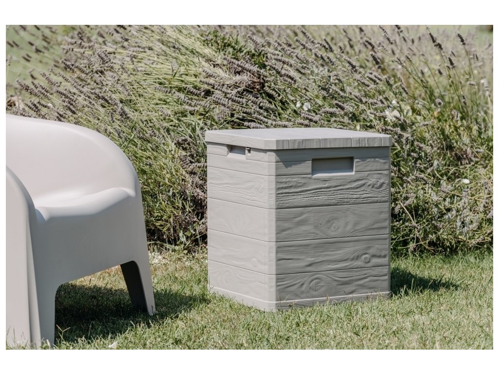Díky svému atraktivnímu designu se tento box skvěle hodí do jakékoli zahrady nebo na terasu. Jeho imitace dřevěného povrchu přidává do prostoru příjemný rustikální šarm.