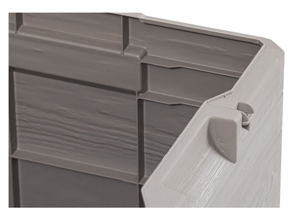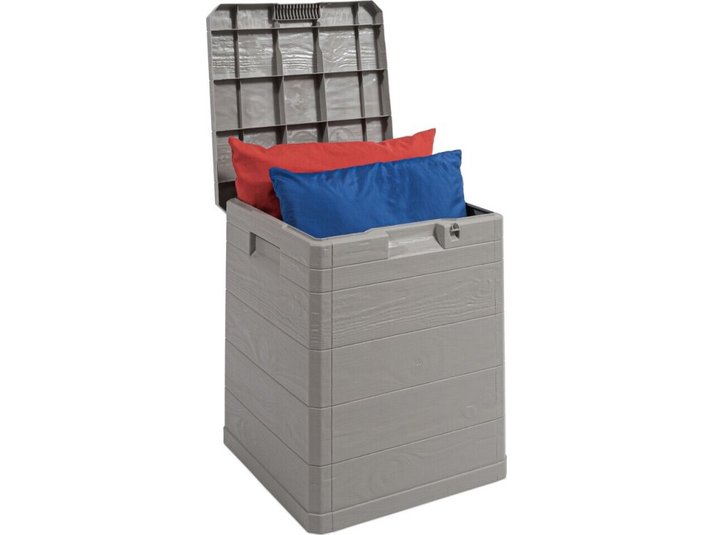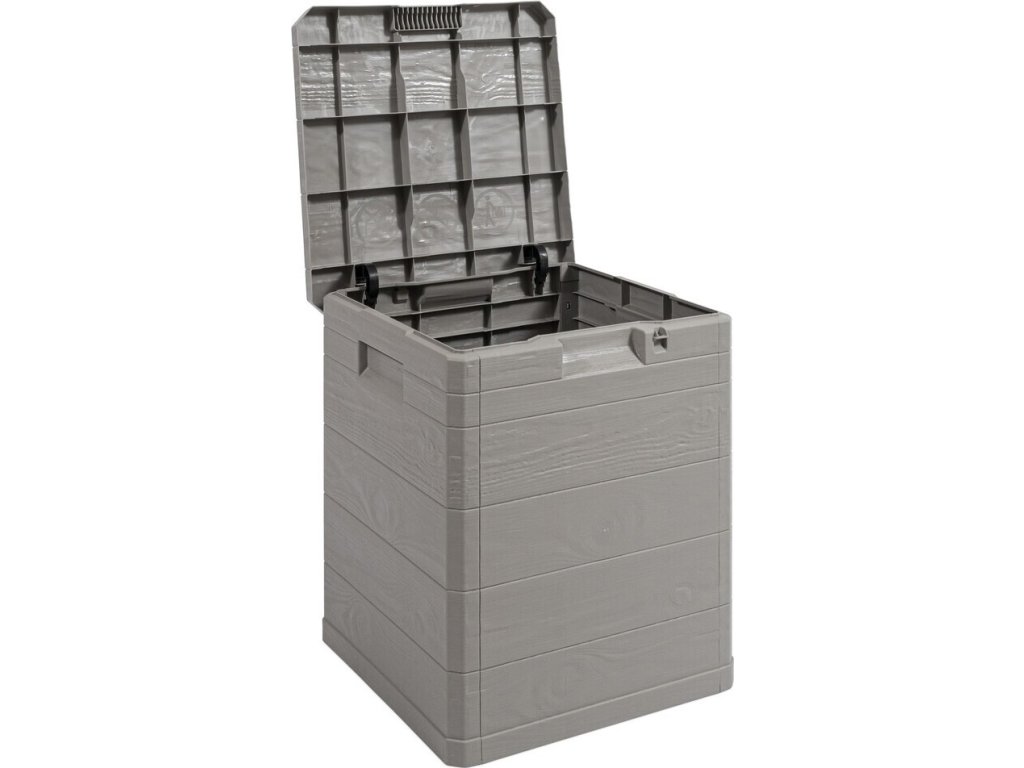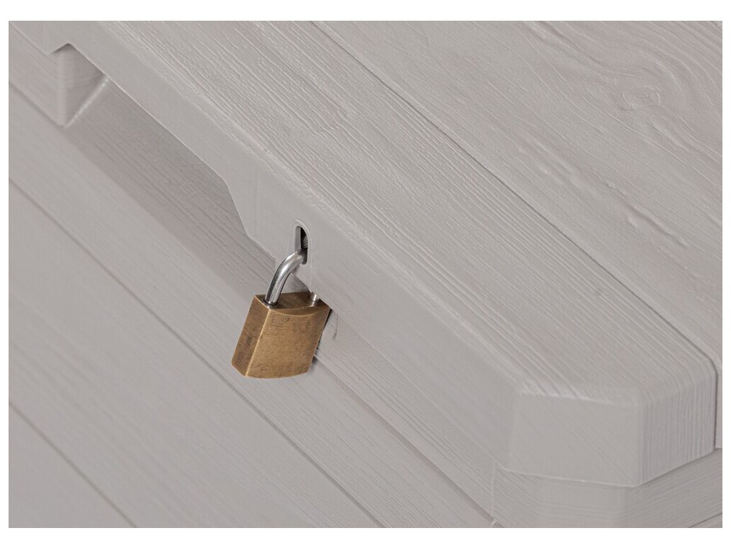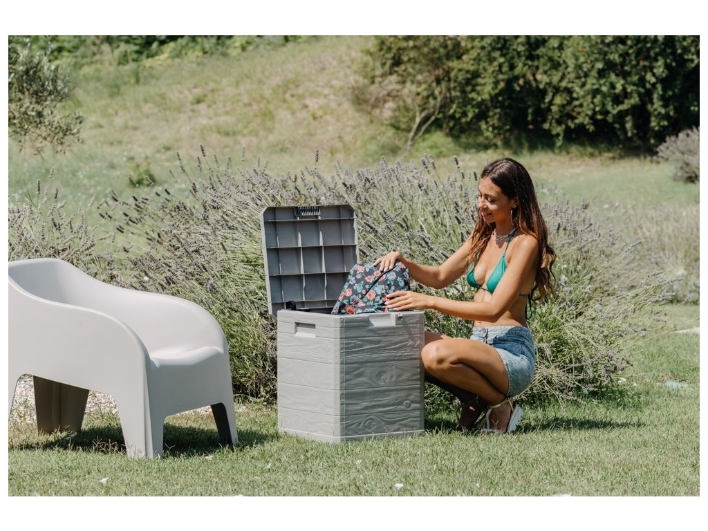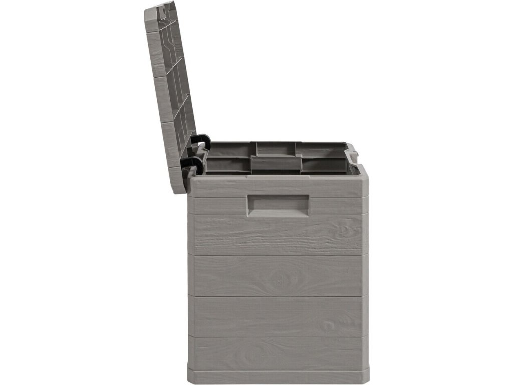 Díky svému atraktivnímu designu se tento box skvěle hodí do jakékoli zahrady nebo na terasu. Jeho imitace dřevěného povrchu přidává do prostoru příjemný rustikální šarm.