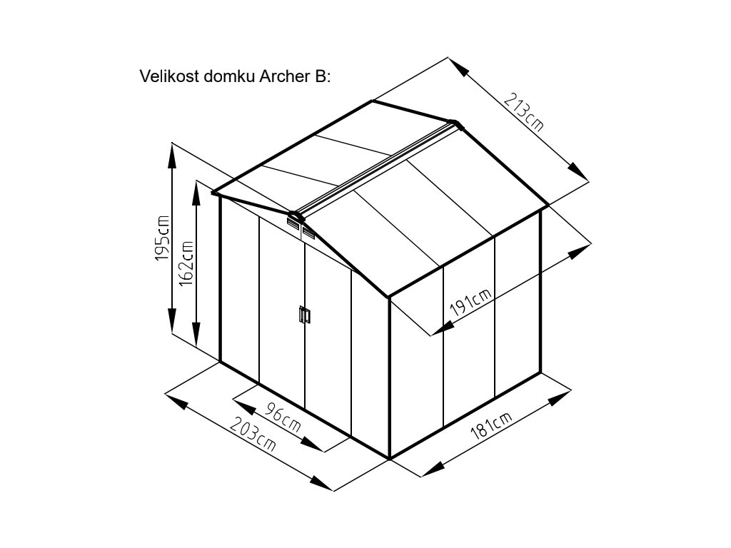 Zahradní domek ARCHER využijete pro uskladnění např. zahradního nářadí, jízdního kola, sekačky, příslušenství k bazénu atd.
