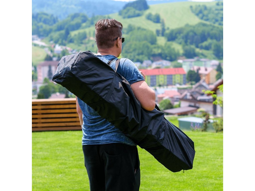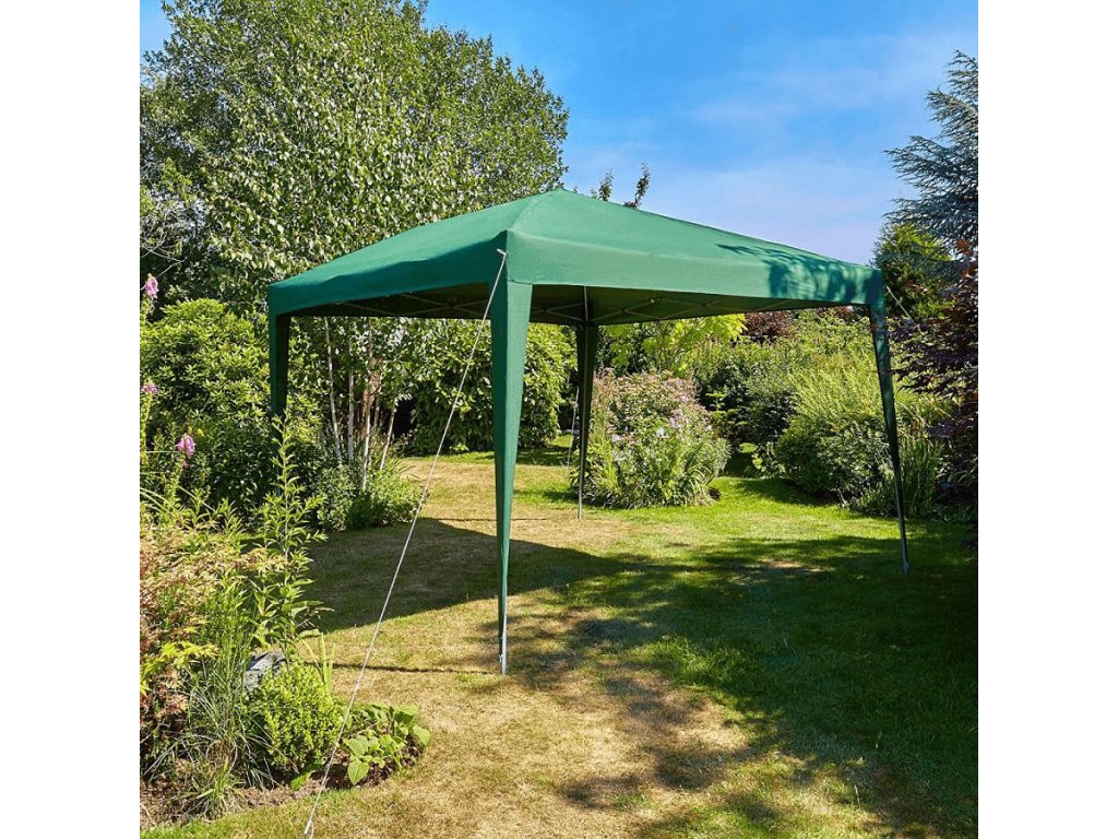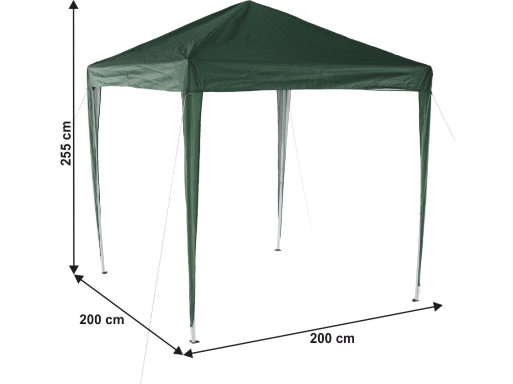 Materiál: 100% polyester / ocel Barva: zelená Rozměry (ŠxHxV): 200x200x250 cm nepromokavý Odolný vůči UV záření Ochrana před slunečním zářením a lehkým deštěm Nevystavujte ho nepříznivým povětrnostním podmínkám Dodávané v demontu
