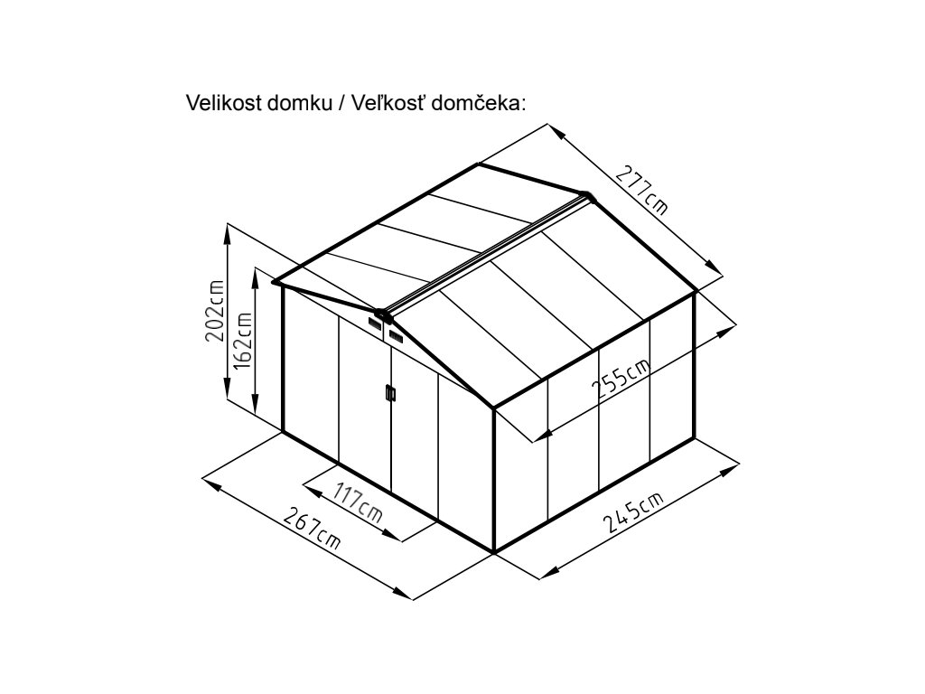 Domek má dvojité posuvné dveře, tudíž do něj budete mít pohodlný přístup.