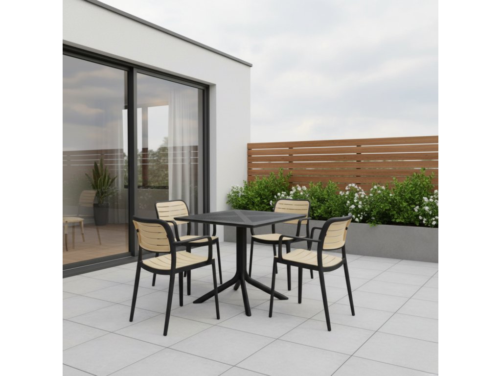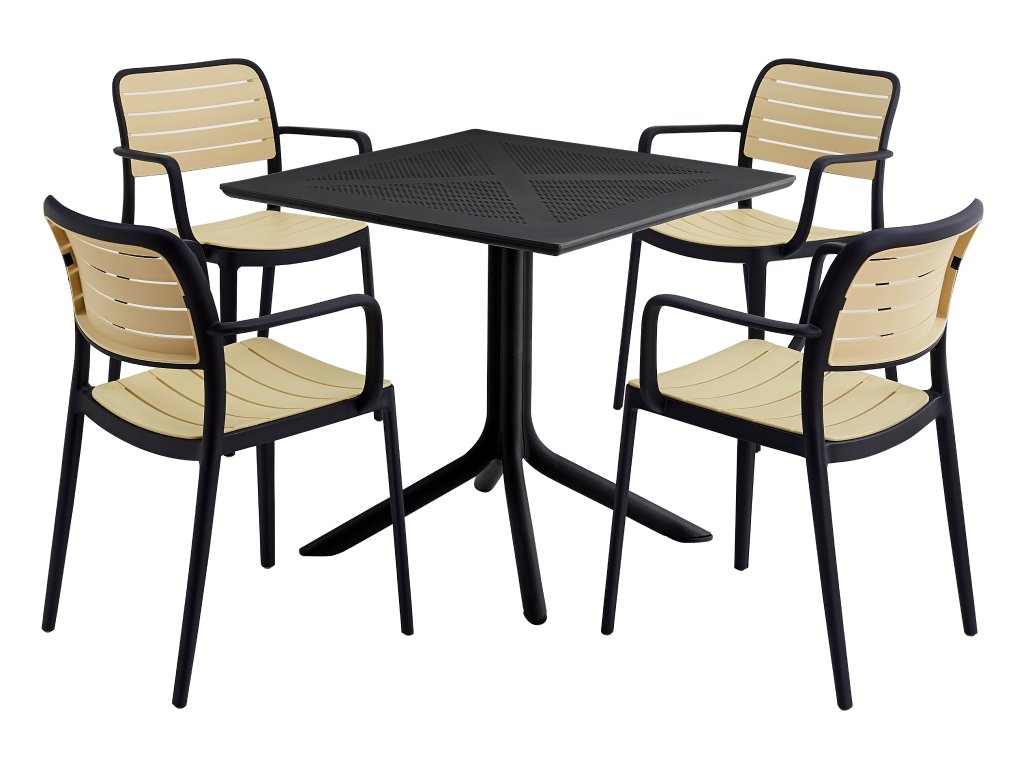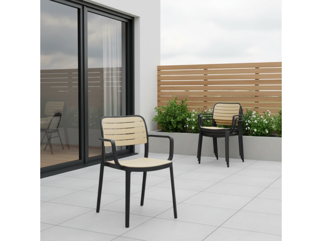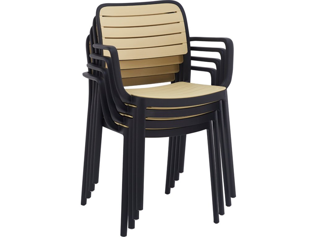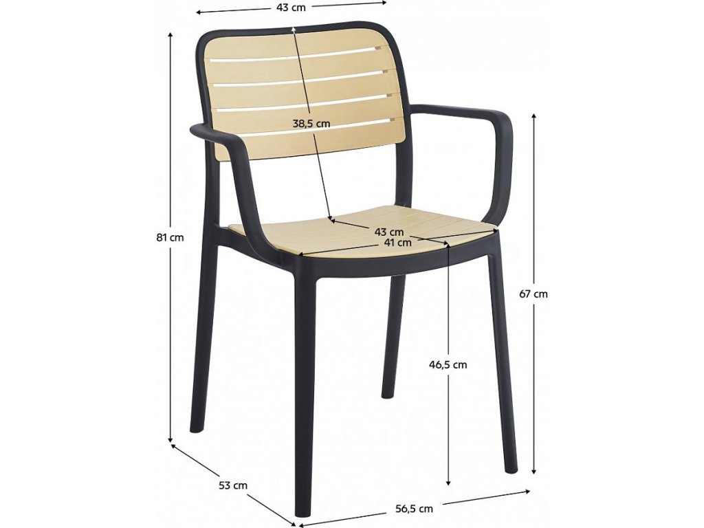 Materiál: plast Barva: černá/béžová Rozměry (ŠxHxV): 56,5x53x81 cm Výška sedu: 46,5 cm Hloubka sedu: 43 cm Šířka sedu: 41 cm Výška zad: 38,5 cm Šířka zad: 43 cm Nosnost: 100 kg Hmotnost: 5,3 kg Stohovatelná Vhodná do interiéru i exteriéru Dodáváno v monte