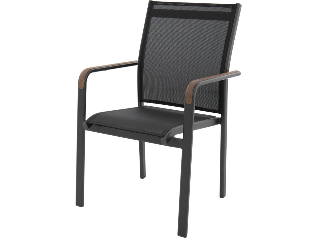EXPERT WOOD Plus - zahradní stohovatelné křeslo Stohovatelné zahradní křeslo EXPERT WOOD Plus je vyrobeno z bezúdržbových materiálů. Stabilní hliníková konstrukce v antracitové barvě je doplněna výpletem z kvalitní umělé textilie v barvě antracit. Vše doplňují hliníkové područky s práškovým nástřikem v tónu tmavě hnědého dřeva se zaobleným konci. Zahradní stohovací křeslo EXPERT WOOD Plus značky DOPPLER je nenáročné na manipulaci. Díky možnosti stohování zabírá minimum skladovací plochy. Díky použitým materiálům je zcela bezúdržbové a odolné povětrnostním vlivům. Informace o produktu pevná a lehká hliníková konstrukce výplet z umělé textilie černé barvy hliníkové područky v dekoru dřeva možnost stohování křesel na sebe ergonomicky tvarovaný sedák bezúdržbové, odolné povětrnostním vlivům doporučená maximální nosnost: cca 100 kg rozměry celkové: 57 x 62 x 92 cm (šířka x hloubka x výška) rozměry sedáku: 41 x 50 cm (šířka x hloubka)