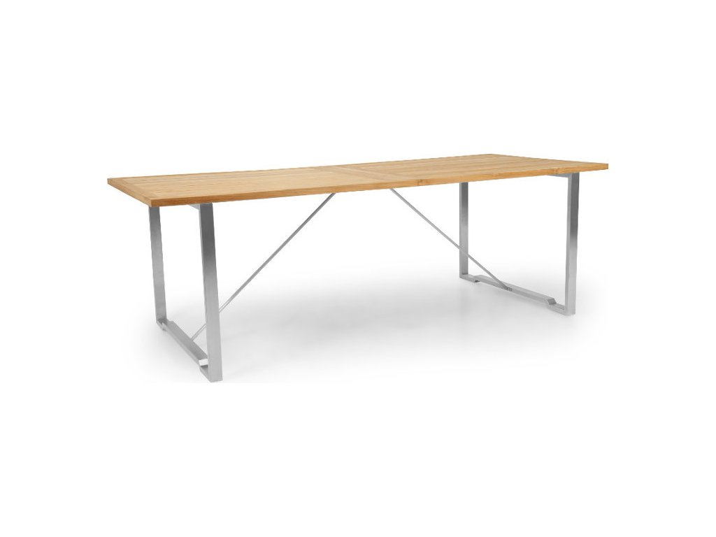 Moderná záhradná jedálenská súprava kombinovaná nerezovou oceľou a prvotriednym teakovým drevom od dizajnéra Dicka Björka. Na prvý pohľad zaujme svojim spracovaním a farebným kontrastom čiernej syntetickej textílie a prírodným teakovým drevom. Zloženie: 6x stolička, 1x stôl 220 x 95cm. Cena je bez textilných polstrov.Materiál: nerezový rám, teakové drevo a syntetická textíliaRozmery:Stolička: 53 x 57 x 86cm Š/H/VStôl: 220 x 95 x 73cm Š/H/VHmotnosť súpravy: 66 kg