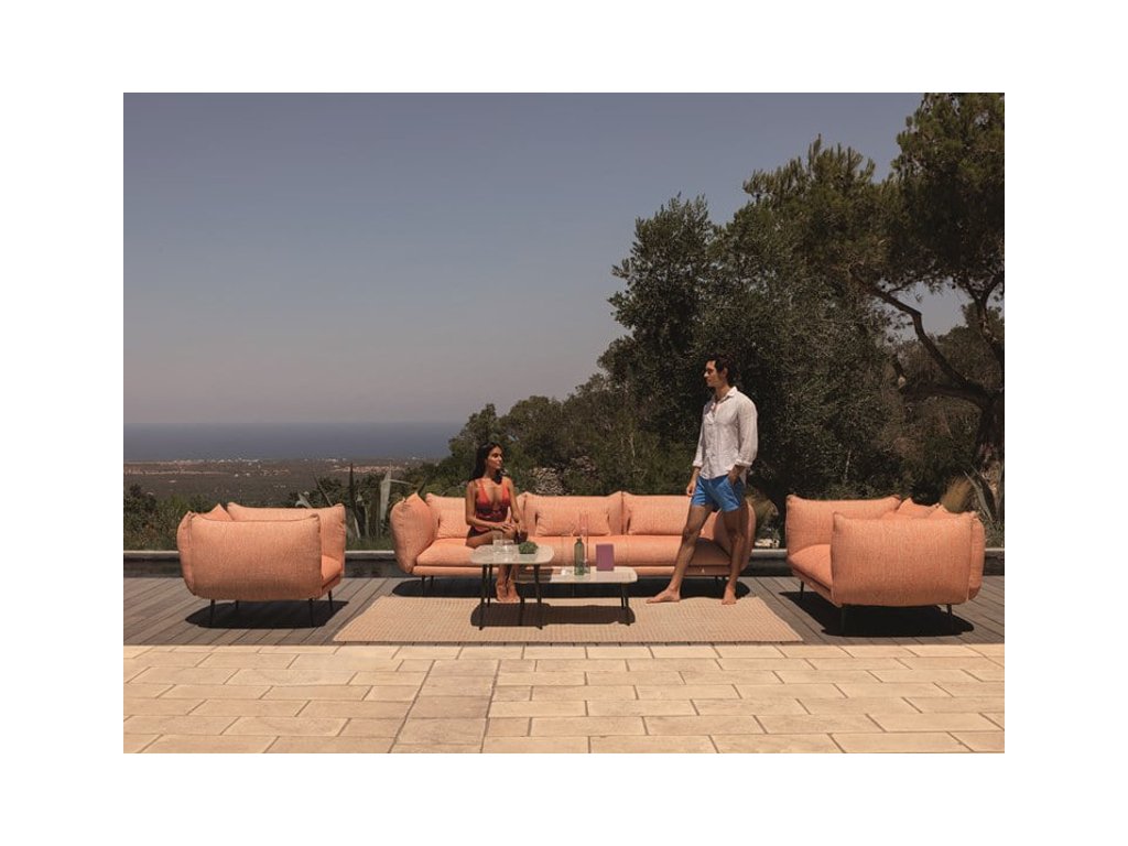 Pohodlie je základným kameňom kolekcie Piuma, ktorú navrhol Lanzavecchia Wai pre MYYOUR. Piuma poteší širokou vyriabilitou od pohoviek, kresiel, podnožníkov a konferenčným stolíkov s minimálnym, ľahkým a mäkkým dizajnom. Hliníková konštrukcia podporuje čalúnenie, vďaka čomu sa vznáša vo vzduchu a zväčšuje jeho objem. Vonkajšie látkové čalúnenie je dostupné v troch odtieňoch so zvýrazneným prešívaním. Piuma je navrhnutá tak, aby vydržala dlhodobé používanie vo vonkajšom prostredí vďaka osmotickej membráne, a aby vytvorila zvýšený komfort, simulujúci váľandu, vďaka systému sklápania, ktorý umožňuje znížiť opierky rúk aj operadlá. Modulárnosť sedačky Piuma umožňuje vytvárať rôzne kompozície, čo uľahčuje ich vloženie do akéhokoľvek kontextu.Zloženie súpravy: 2ks kreslo, 1ks 3-miestna pohovkaRozmery: kreslo: 106 x 87 x 74cm Š/H/Vpohovka: 276 x 84 x 74cm Š/H/VMateriál: hliníkový rám a syntetická textília SUNBRELLAFarba rámu: čierna gunmetallFarba textílie: šedá, zelená a oranžová Hmotnosť: