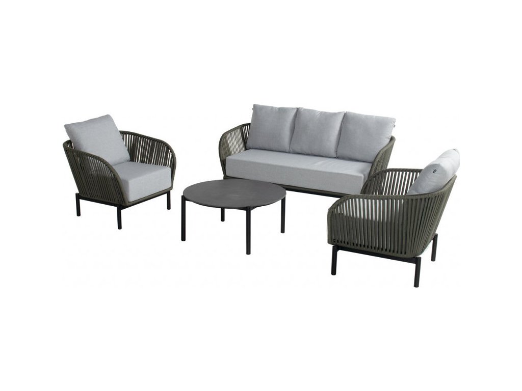 Sedacia súprava Arezzo je dizajnový, moderný záhradný nábytok v čiernej farbe doplnený textilným polstrovaním v svetlej šedej farbe. Vďaka pevnej hliníkovej konštrukcii a výpletu zo syntetického povrazu je sedačka Arezzo vhodná do exteriéru. Vysoké textilné polstrovanie zabezpečí maximálny komfort aj pri dlhšom sedení. Zloženie súpravy: 2ks kreso, 1x 3-miestna sofa, 1ks konferenčný stolík Materiál: hliníkový ráma a syntetický povrazFarba: čierna so šedouRozmery:kreslo 80 x 93 x 75 cm Š/H/Vsofa 182 x 80 x 75 cm Š/H/Vstolík 90cm priemer, výška 42 cm Hmotnosť súpravy: 75 cm