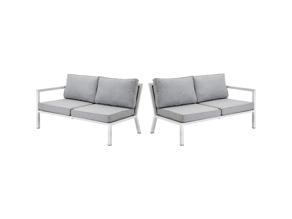 6. dielna moderná rohová súprava z hliníkového rámu bielej matnej farby. Súprava je vhodná do exteriéru alebo zimnej záhrady. Má minimálne nároky na údržbu vďaka hliníkovému rámu, ktorý zabezpečí, že nábytok nebude hrdzavieť. Stolík k súprave je voliteľný a na výber je celohliníkový s úložným priestorom alebo s 5mm bezpečnostným sklom s matným povrchom. Súčasťou dodávky sú kvalitné, vode odolné šedé textilné polstre a vankúšiky so snímateľným čalúnením v svetlej šedej farbe.Zloženie: súprava obsahuje 1x ukončovacie diely Ľavý+Pravý, 1x rohový diel, 1x celohliníkový stolík Chelles 90x90 cmFarba rámu: matná biela Rám: hliníková konštrukciaRozmery:ukončovací modul: 144 x 87,5 x 76cm (Š/H/V)rohový modul: 87,5 x 87,5 x 76cm (Š/H/V)stredový modul: 70 x 87,5 x 76cm (Š/H/V)kreslo: 74 x 87,5 x 76cm (Š/H/V)stolík: 90 x 90 x 45cm (Š/H/V)Hmotnosť súpravy: 99 kg