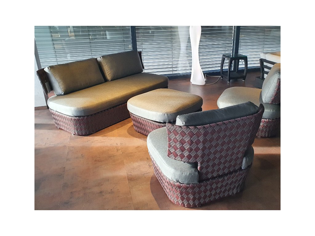 Moderná súprava Kente sa vyznačuje ručne tkaným farebným výpletom v jedinečnom dizajne od svetového návrhára Philippe Bestenheidera. Sedenie je pohodlné vďaka kvalitným textilným polstrom. Sklon chrbtovej opierky a hĺbka sedenia zaručia maximálny komfort. Výrobca: Taliansky Varaschin.Zloženie: 2x kreslo, 1x dvojkreslo, 1x taburetMateriál: hliníkový rám a syntetické tkané vláknoFarba vlákna: hnedá multikolorFarba textilného čalúnenia: antracitRozmery:kreslo: 88 x 92 x 81 cm Š/H/Vdvoj kreslo: 197 x 92 x 81 cm Š/H/Vtaburet: 87 x 87 x 44 cm Š/H/VHmotnosť súpravy: 83 kgPríďte si ho vyskúšaťVystavený na predajni
